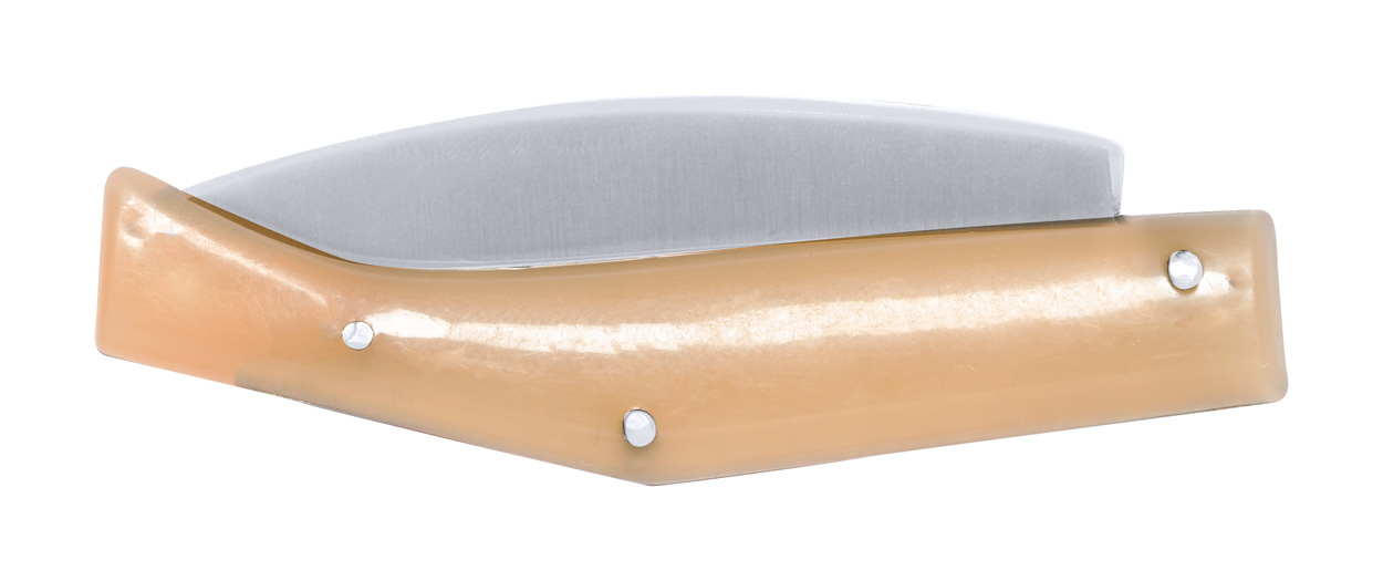 Rozsdamentes acél zsebkés ABS műanyag nyéllel és biztonsági zárral.