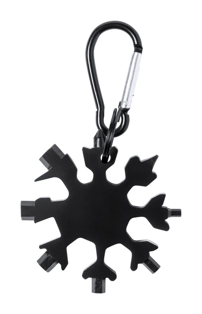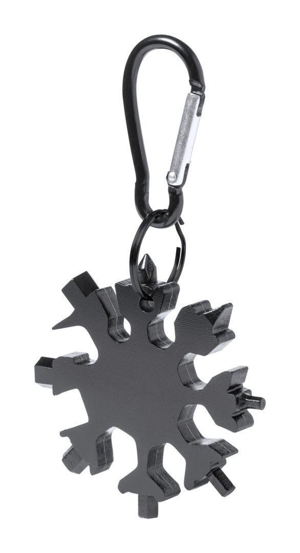 Rozsdamentes acél multiszerszám 17 funkcióval és karabinerrel.