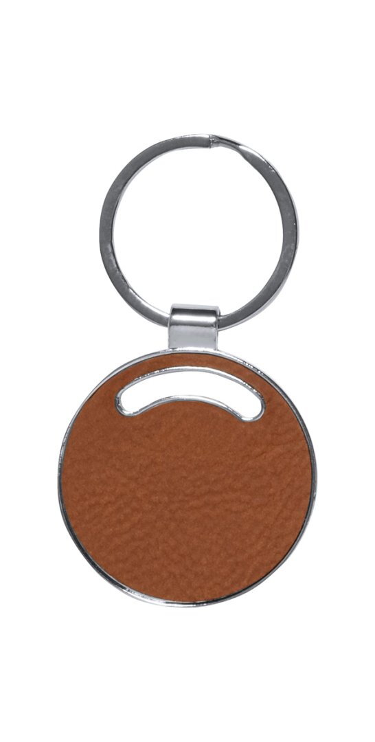 Újrahasznosított bőr borítású fém kulcstartó.
