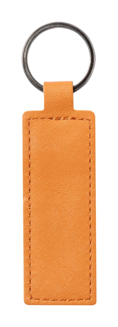Téglalap alakú, újrahasznosított bőr kulcstartó fém karikával.