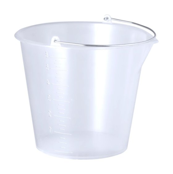 Tartós, átlátszó PP műanyag vödör fém fogantyúval és oldalsó mérőpohárral. 6L
