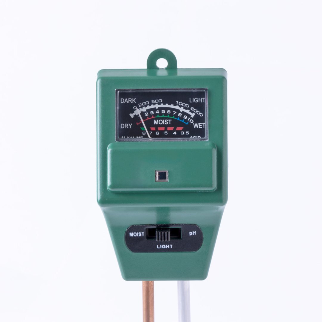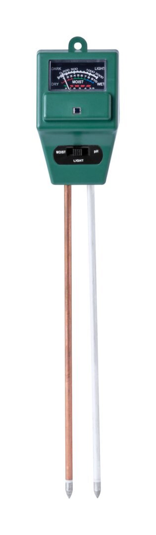 3 az 1-ben talajnedvesség mérő, mely méri a páratartalmat, a pH-t és a fényterhelést.