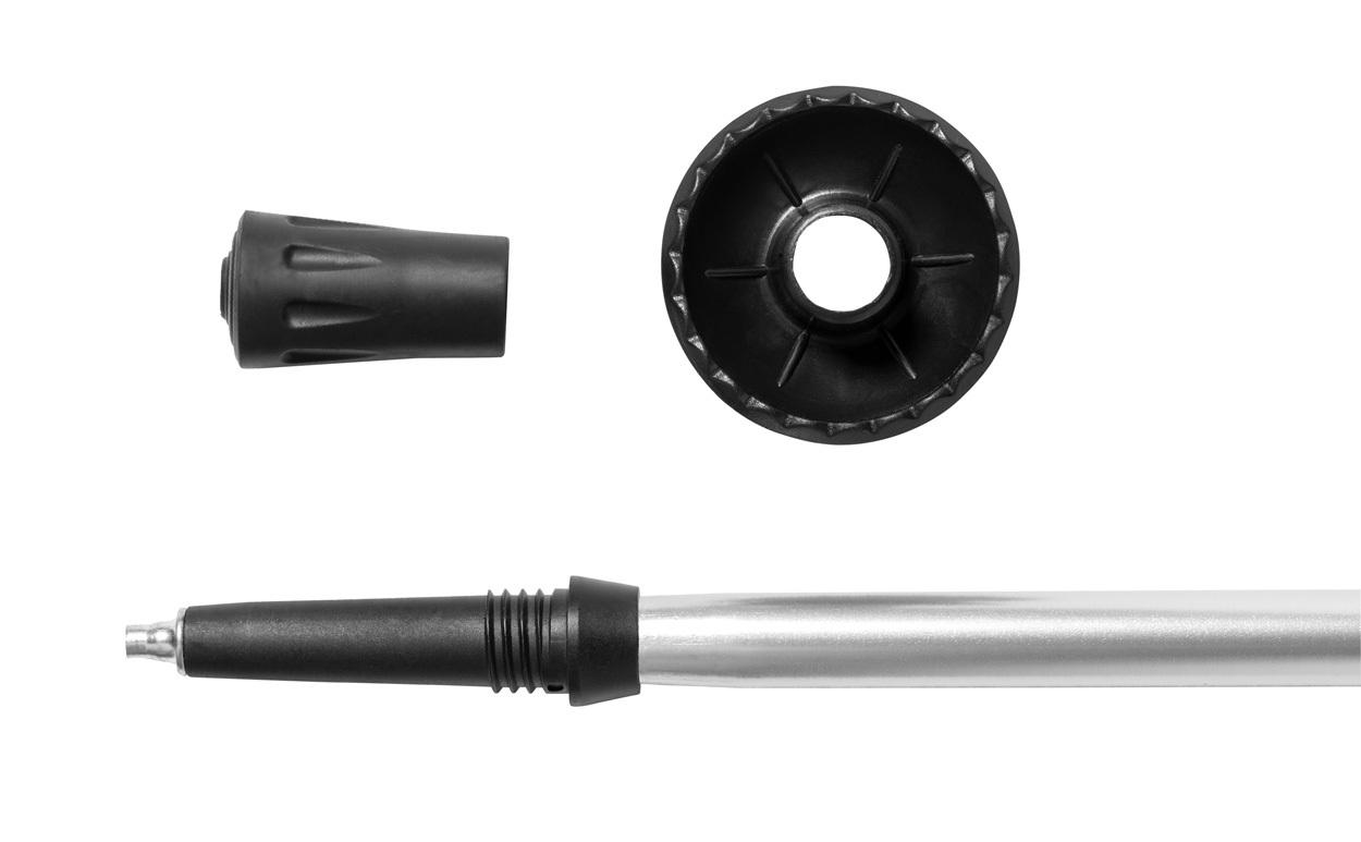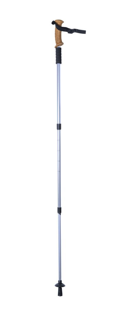 Kihúzható sétabot alumínium vázzal, természetes parafa anyagú ergonomikus fogóval, csuklópánttal és anti-shock rendszerrel. Hókosárral a hordtáskában.