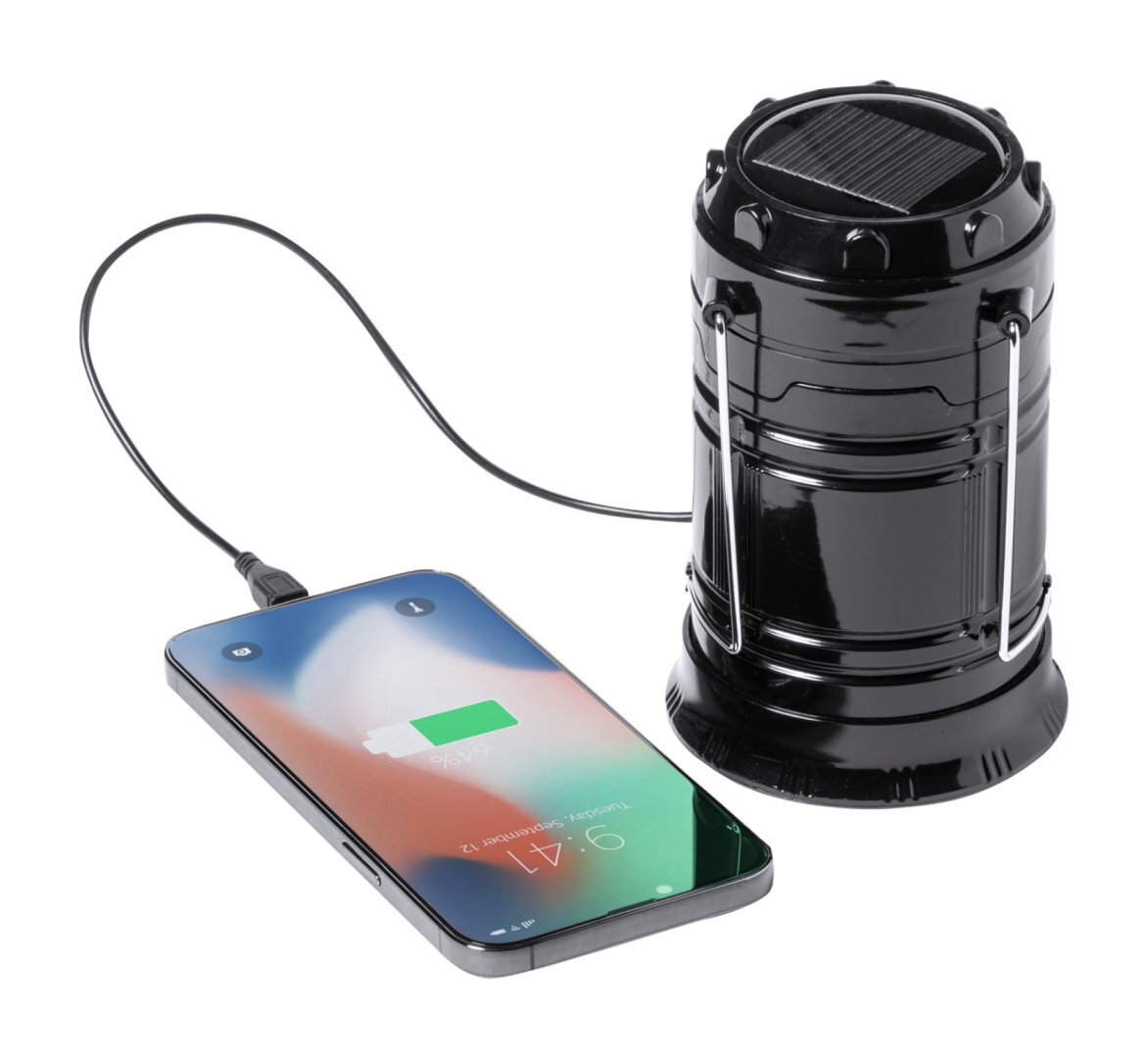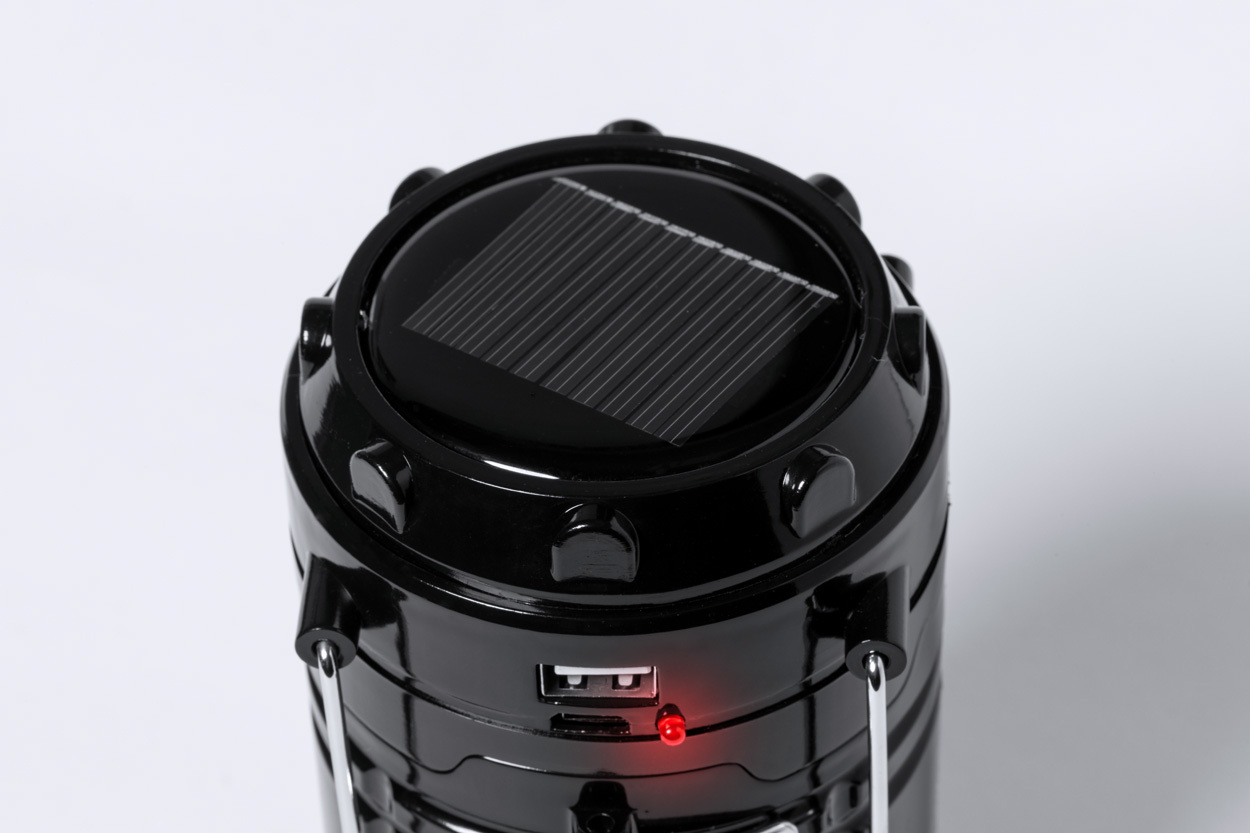 Napelemes kemping lámpa 7 LED-del. Beépített power bank funkció 1200 mAh akkumulátorral és USB töltőporttal.