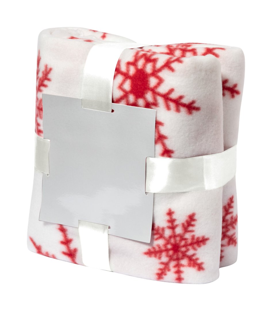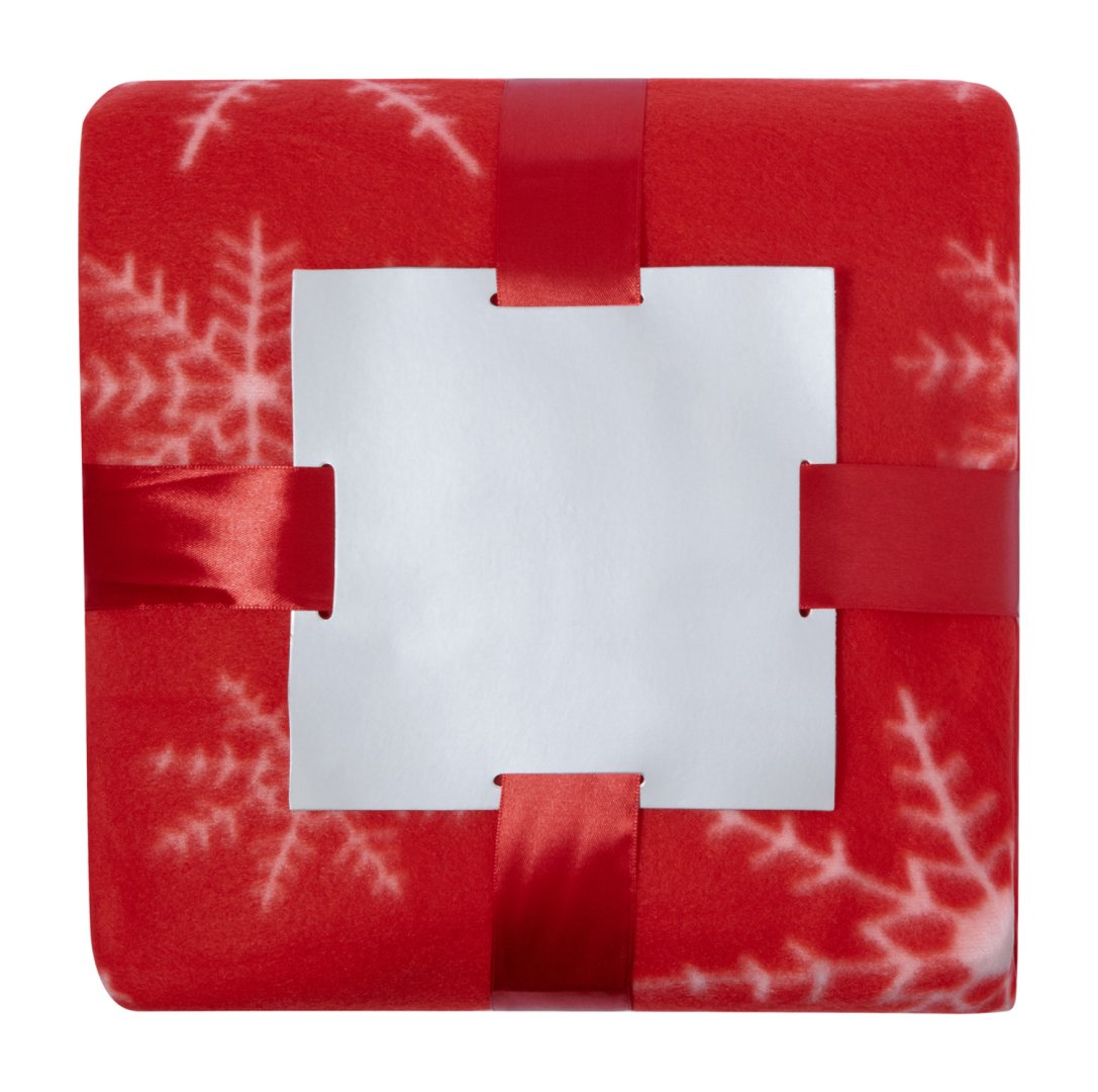 Karácsonyi mintázatú, piros polár takaró, fekete masnival. Takaró anyaga: 100% poliészter, 200 g/m².