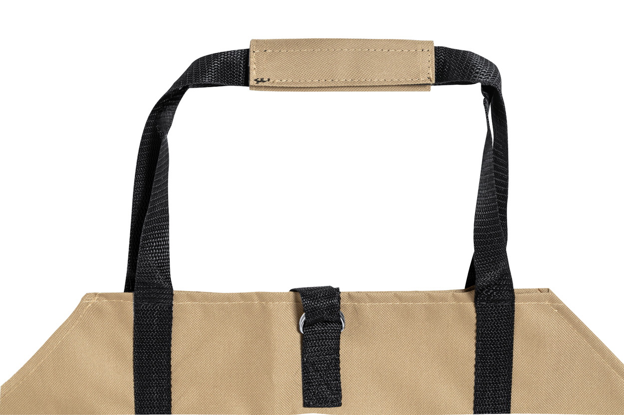 Összehajtható, vízálló tűzifa hordtáska 600D poliészterből, csúszásmentes fogantyúval.