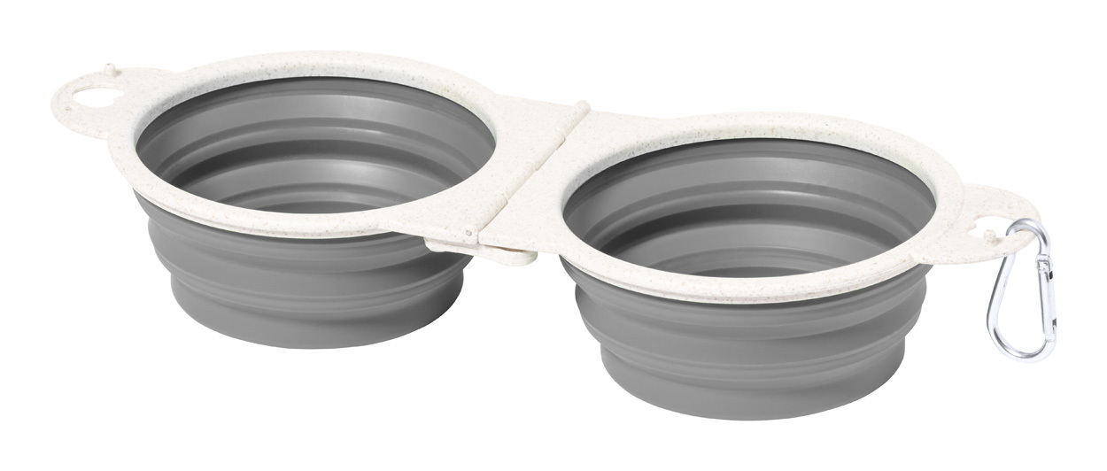 Összecsukható kutyatál búzaszalma műanyagból és TPR-ből, két rekesszel és karabinerrel.