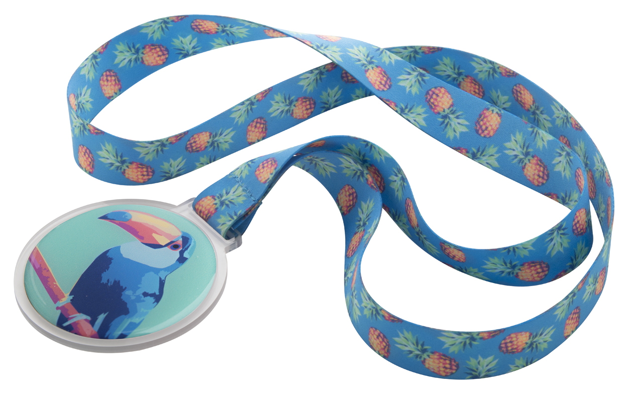Egyedi gyártású akril érem epoxy gyanta borítással. Szublimációs technikával emblémázott RPET poliészter nyakpánton. Az ár tartalmazza a szublimációs emblémázás és az epoxy matrica árát. Minimális rendelési mennyiség: 100 db.