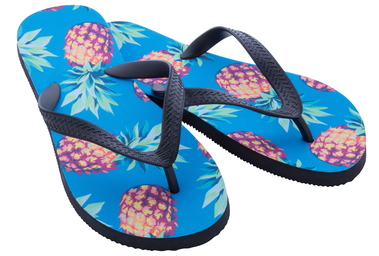 Strandpapucs természetes gumiból készült pánttal és talppal. A termék teljes felső felülete egyedire szabható. Az ár tartalmazza a szublimáció költségét. A talp vastagsága 10 mm. Minimum rendelési mennyiség: 50 db.