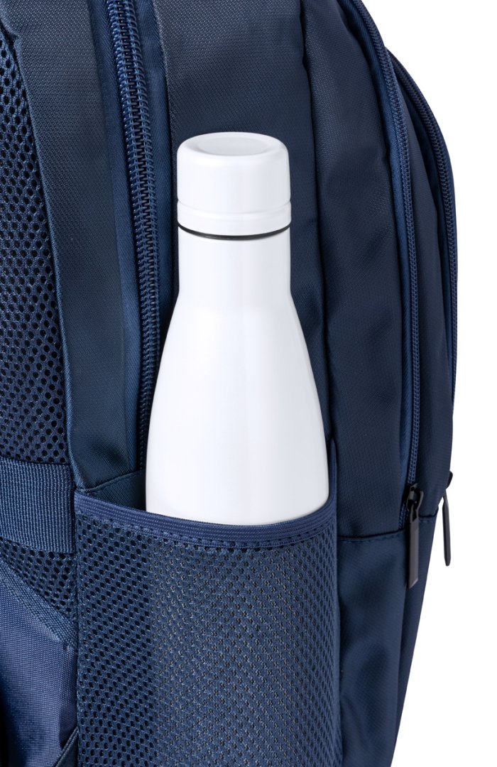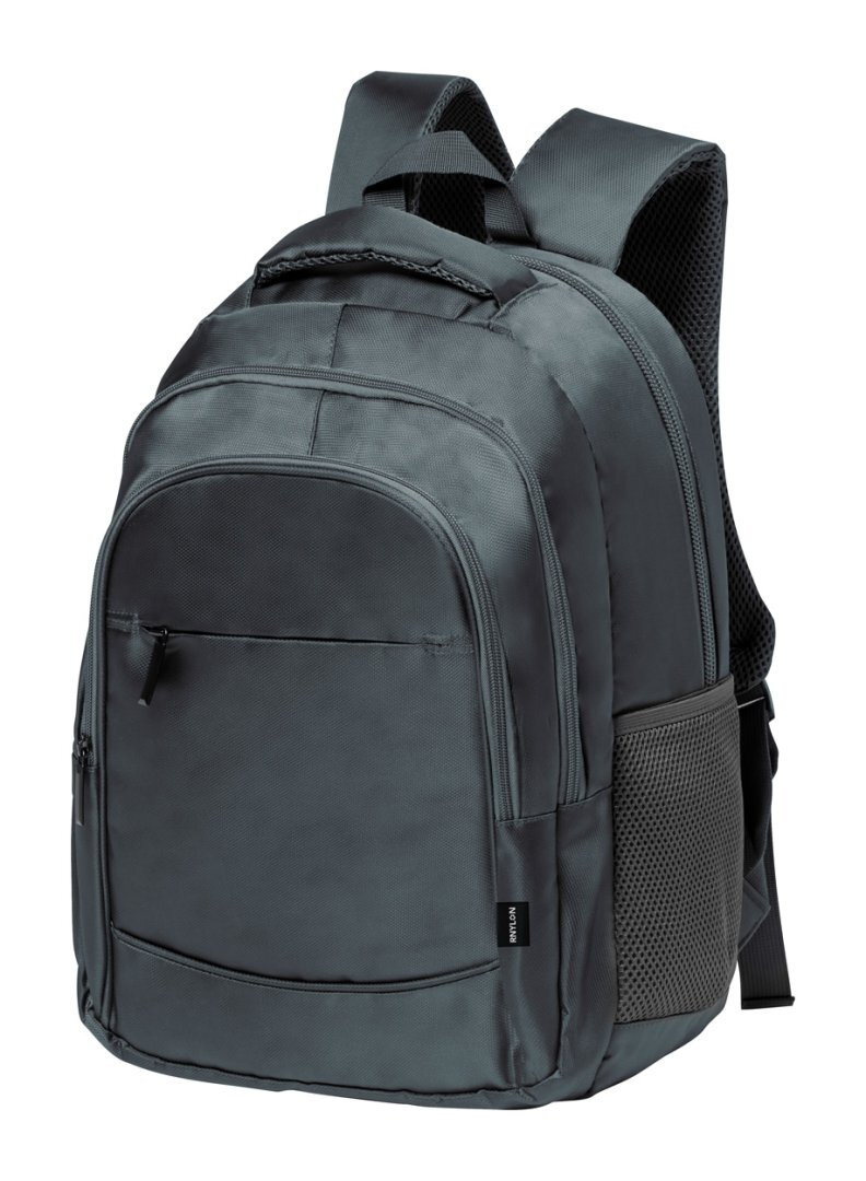 RPET hátizsák több cipzáras rekesszel, hálós oldalzsebekkel, párnázott laptop (15") zsebbel, bőröndre rögzíthető pánttal, ergonomikus hát- és vállpánttal. 420D RPET poliészter, megkülönböztető RPET címkével.