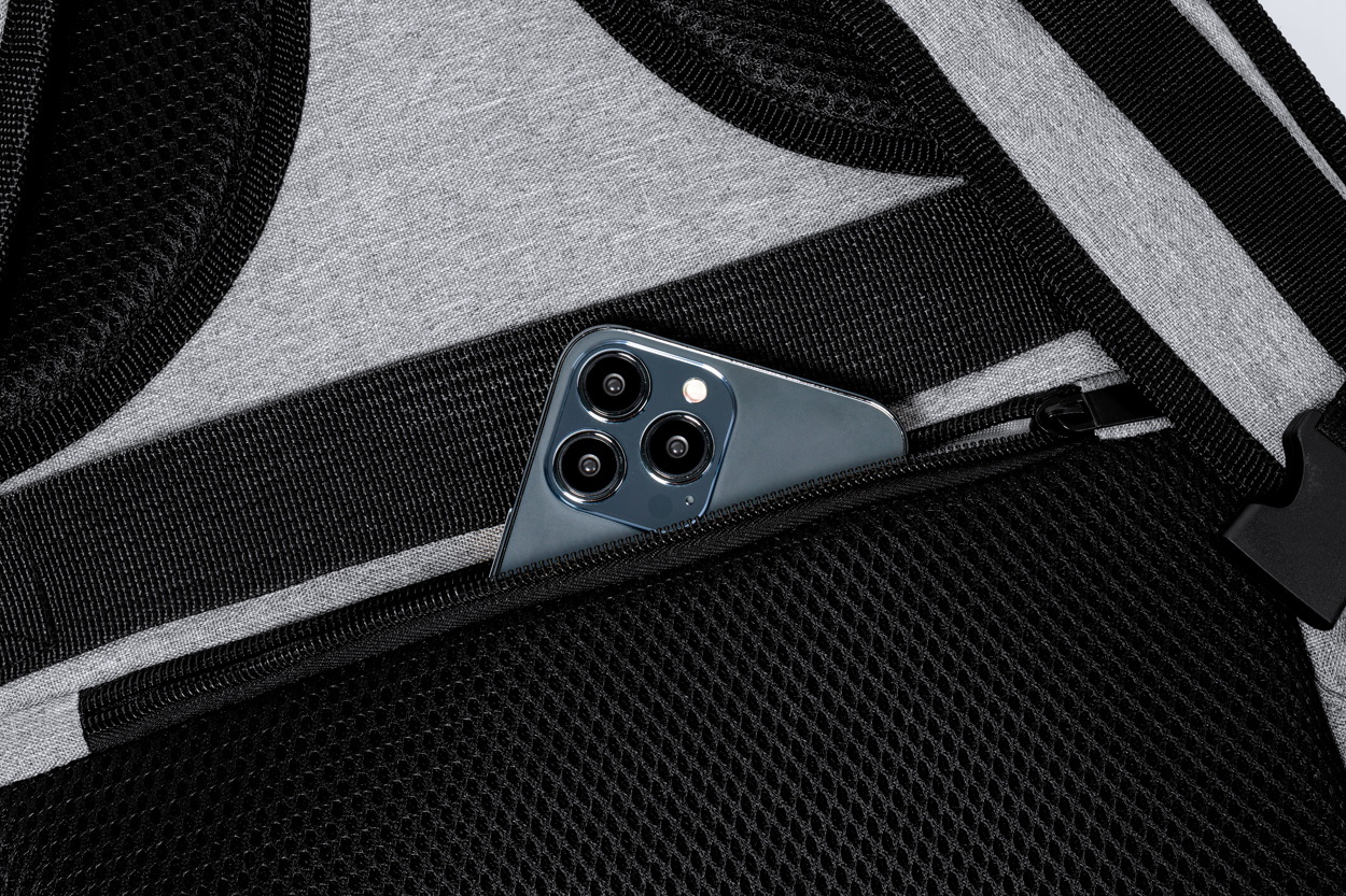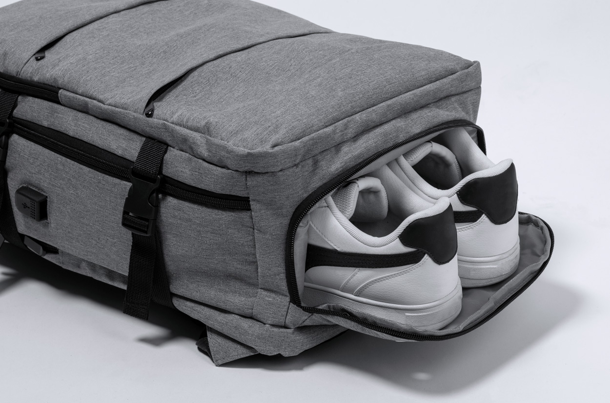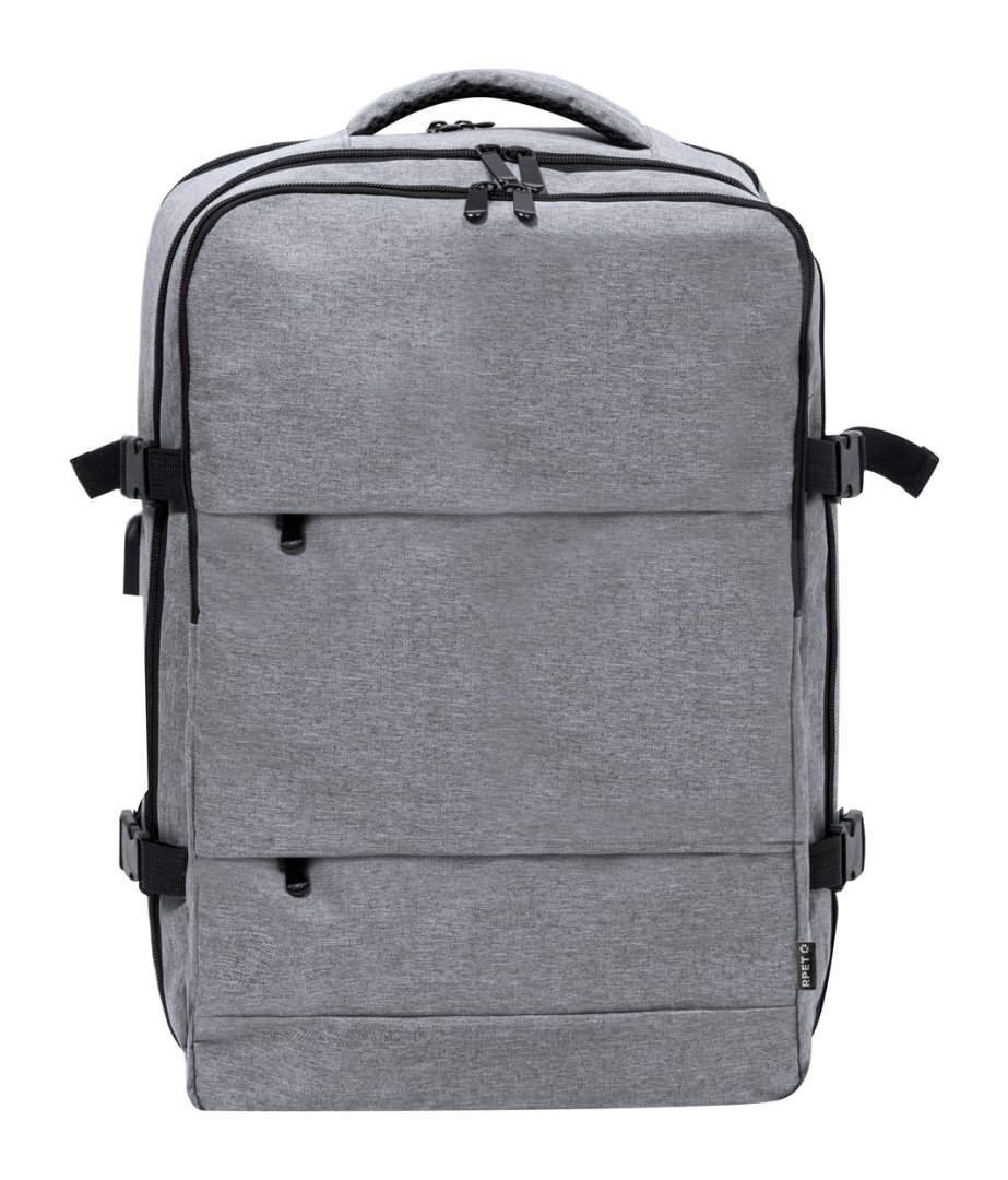 Vízálló RPET hátizsák elülső és oldalsó zsebekkel, cipzáras főrekesszel, párnázott laptop (17") és cipőrekesszel, párnázott hát- és vállpánttal. 300D RPET poliészter, megkülönböztető RPET címkével.