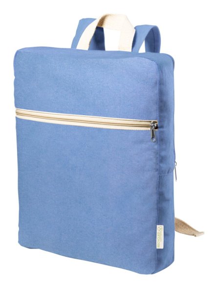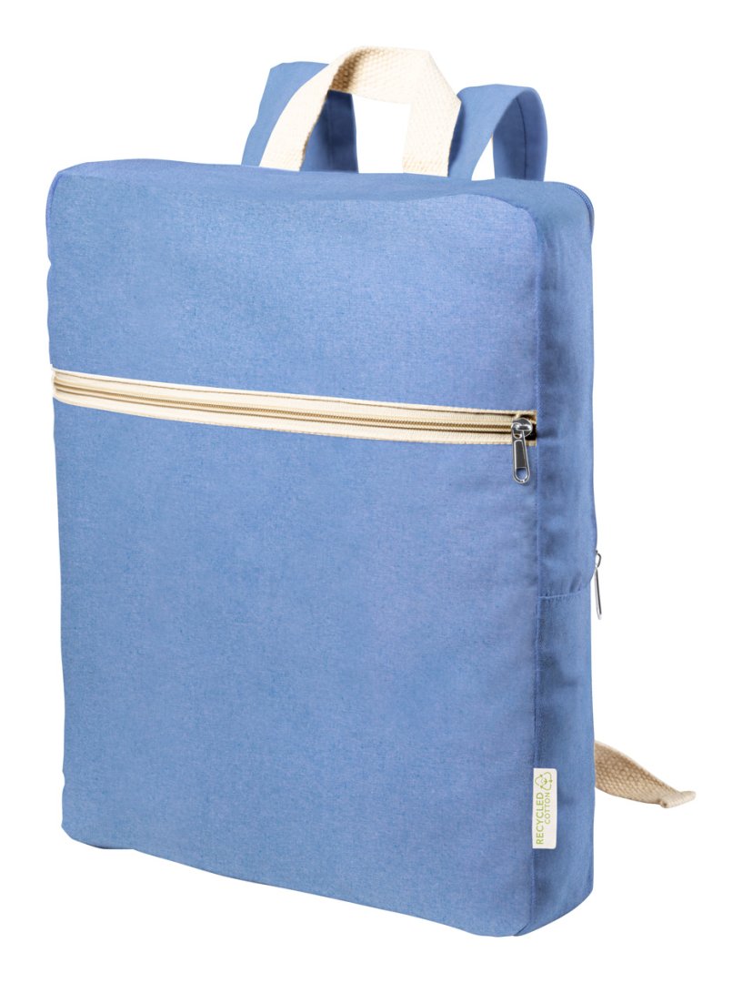 Újrahasznosított pamut hátizsák cipzáras rekesszel és elülső zsebbel. Megkülönböztető újrahasznosított pamut címkével. 100% újrahasznosított pamut, 275 g/m².