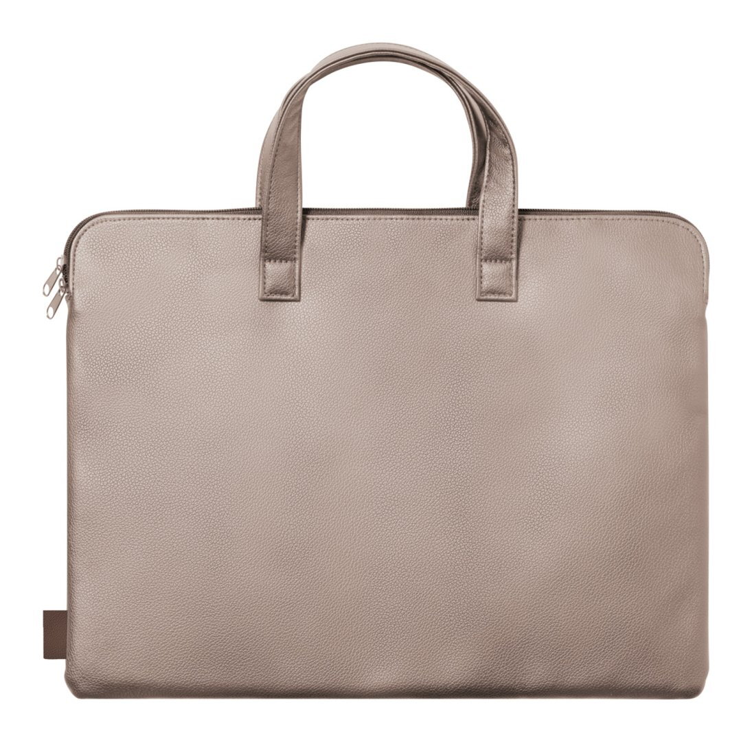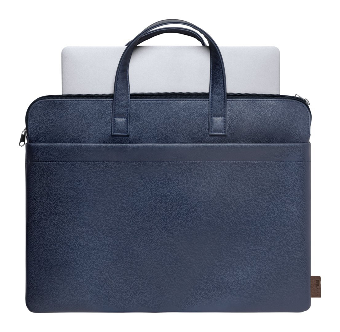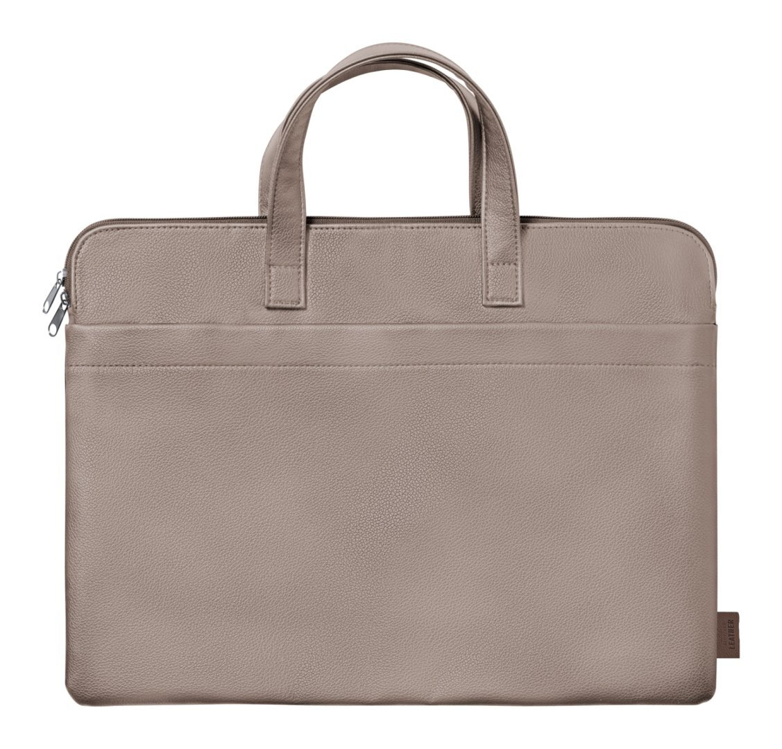 Újrahasznosított bőr irattáska párnázott, cipzáras rekeszekkel és megerősített hordfülekkel. Megkülönböztető újrahasznosított bőr címkével.