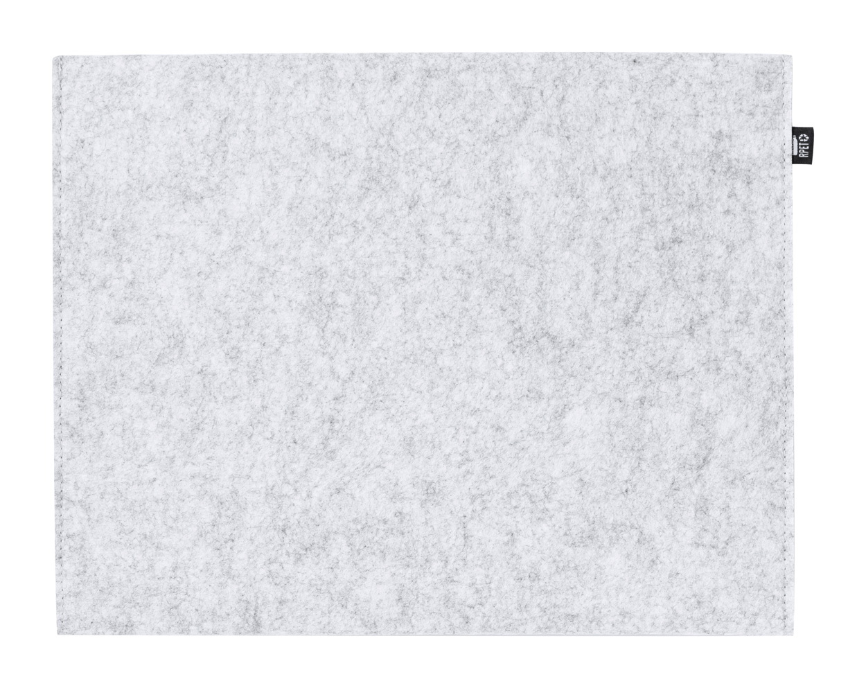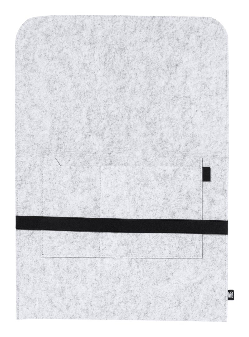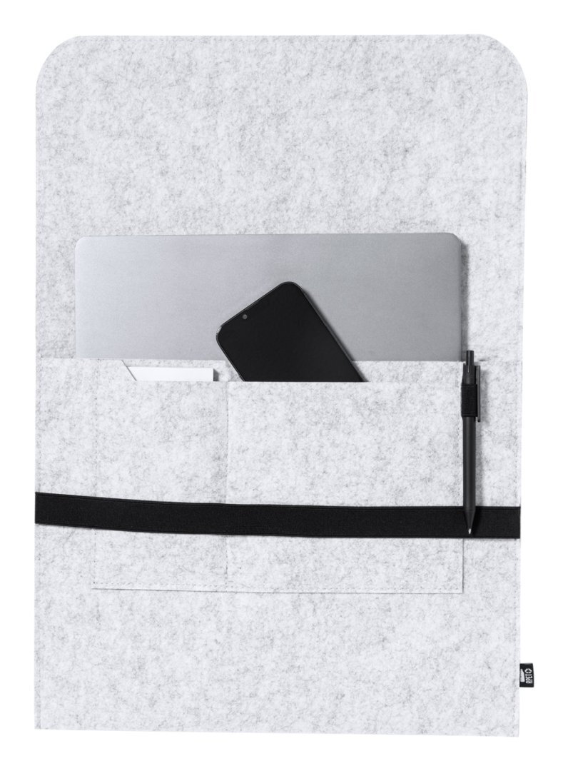RPET filc laptop tartó gumipánttal, elülső zsebbel és tépőzárral. Megkülönböztető RPET címkével.