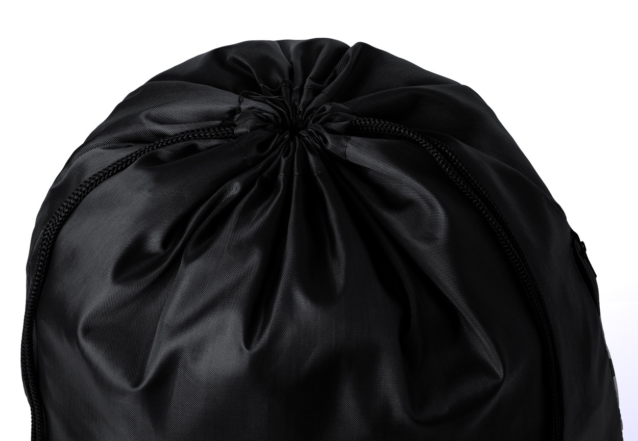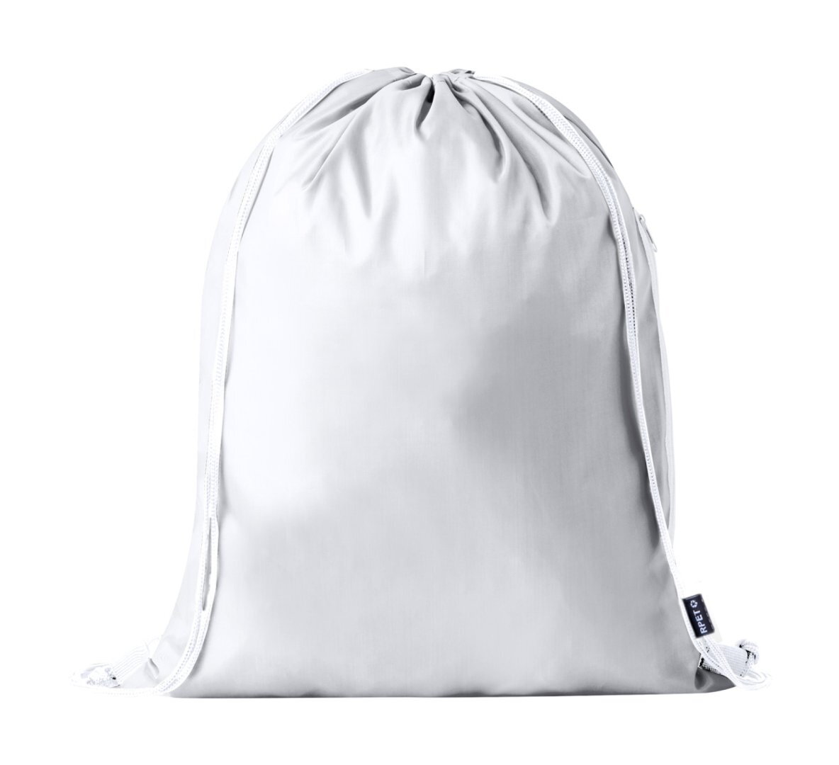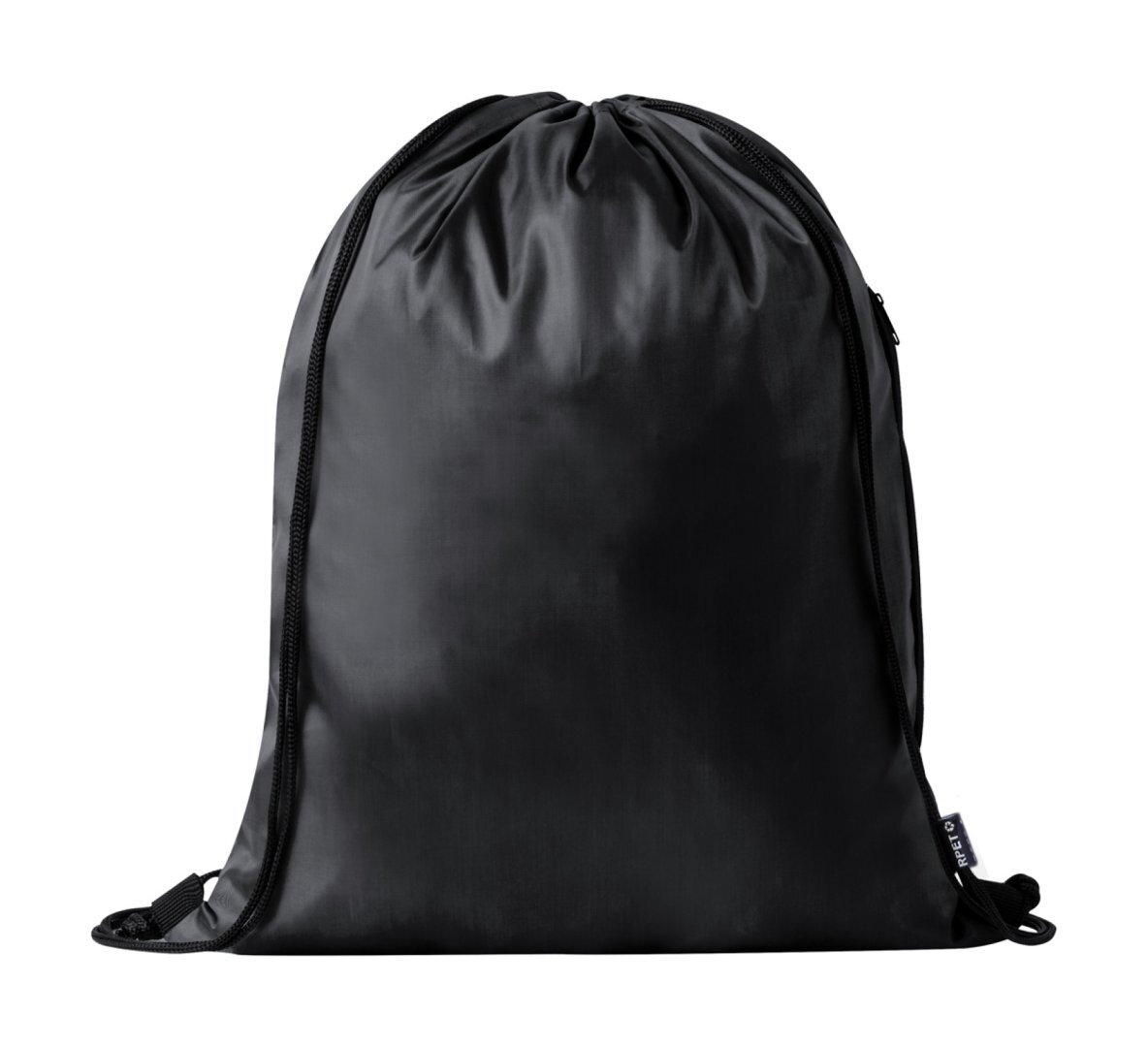 RPET összehúzható hátizsák cipzáras oldalzsebbel, 210T RPET poliészter, megkülönböztető RPET címkével.