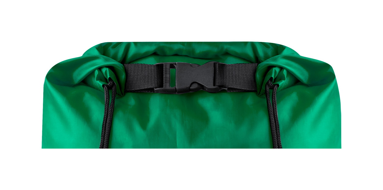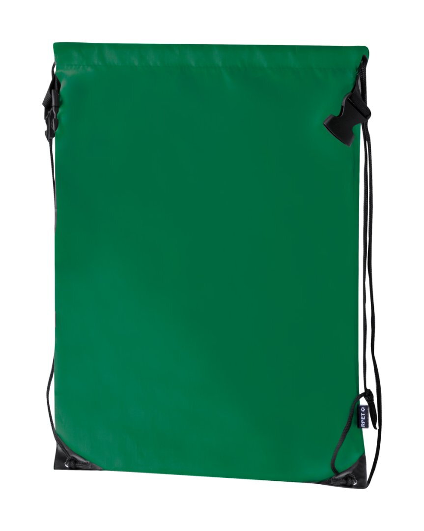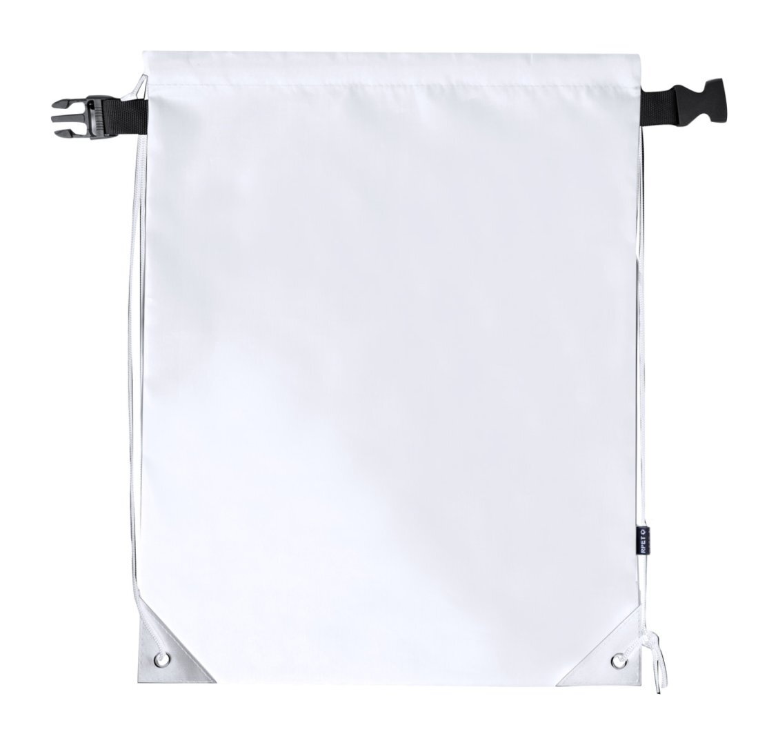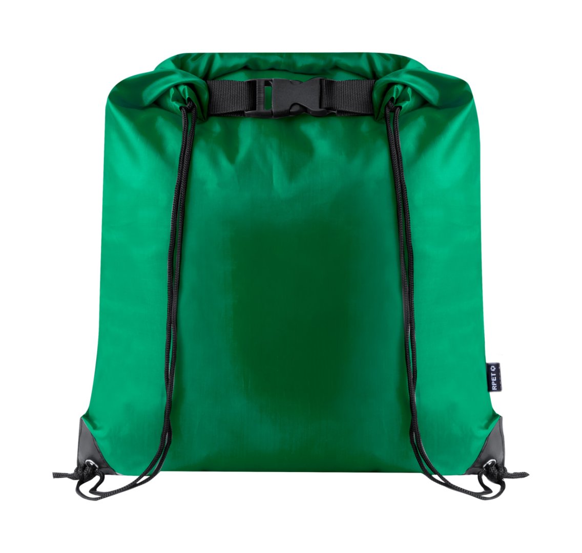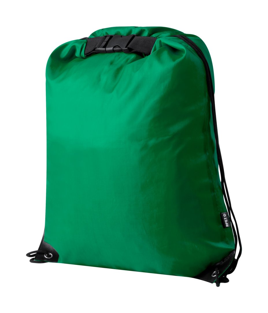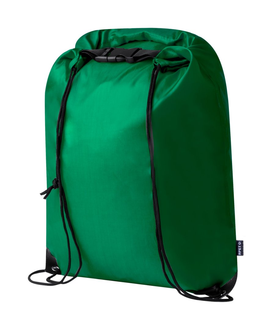 Vízálló RPET összehúzható hátizsák rolltop zárással. 210T RPET poliészter, megkülönböztető RPET címkével.