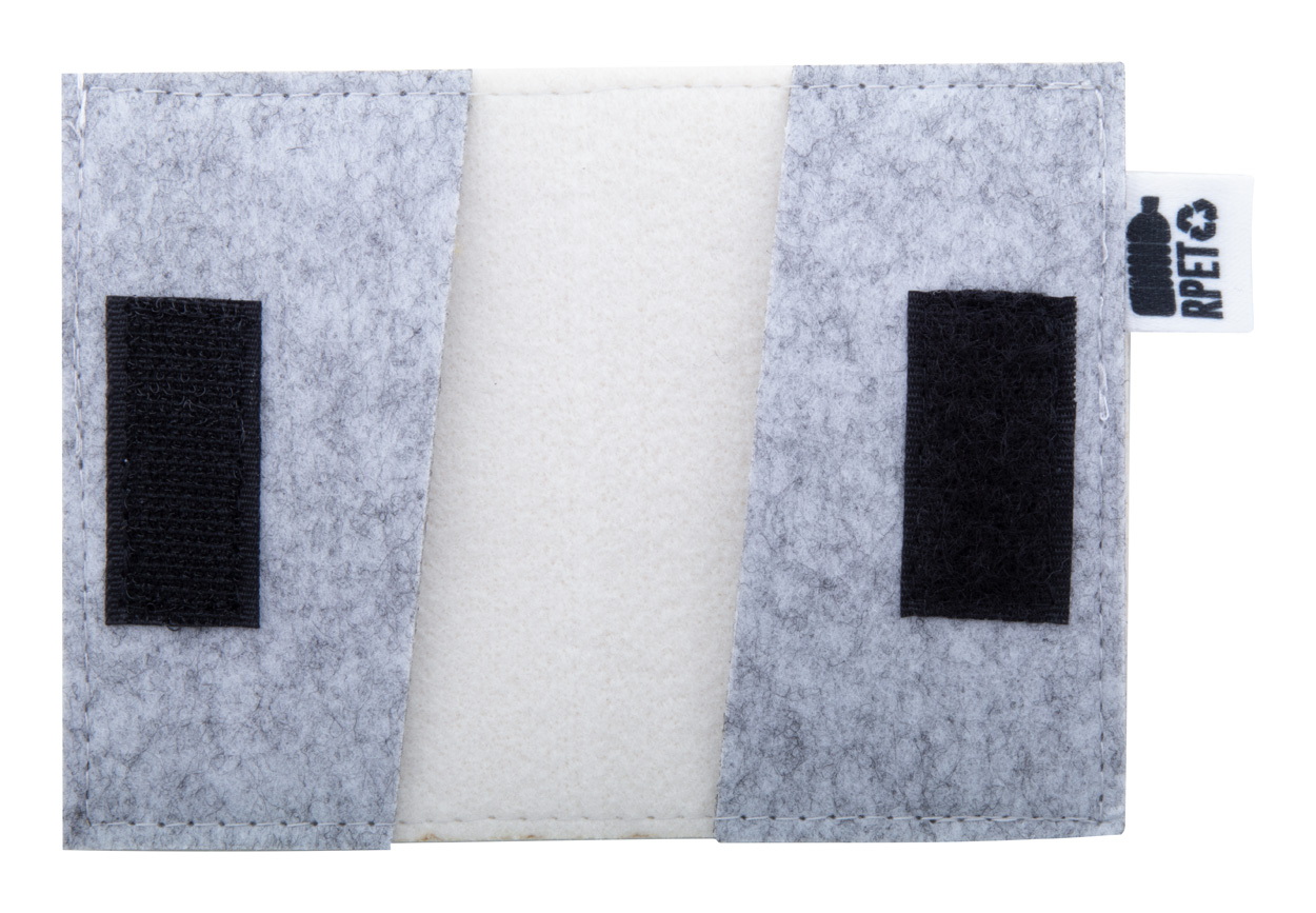 Egyediesíthető, RPET filc bankkártyatartó 2 rekesszel, tépőzárral és full colour emblémázású fedlappal. Megkülönböztető RPET címkével. Az ár tartalmazza a szublimációs emblémázás költségét. Minimális rendelési mennyiség: 50 db.