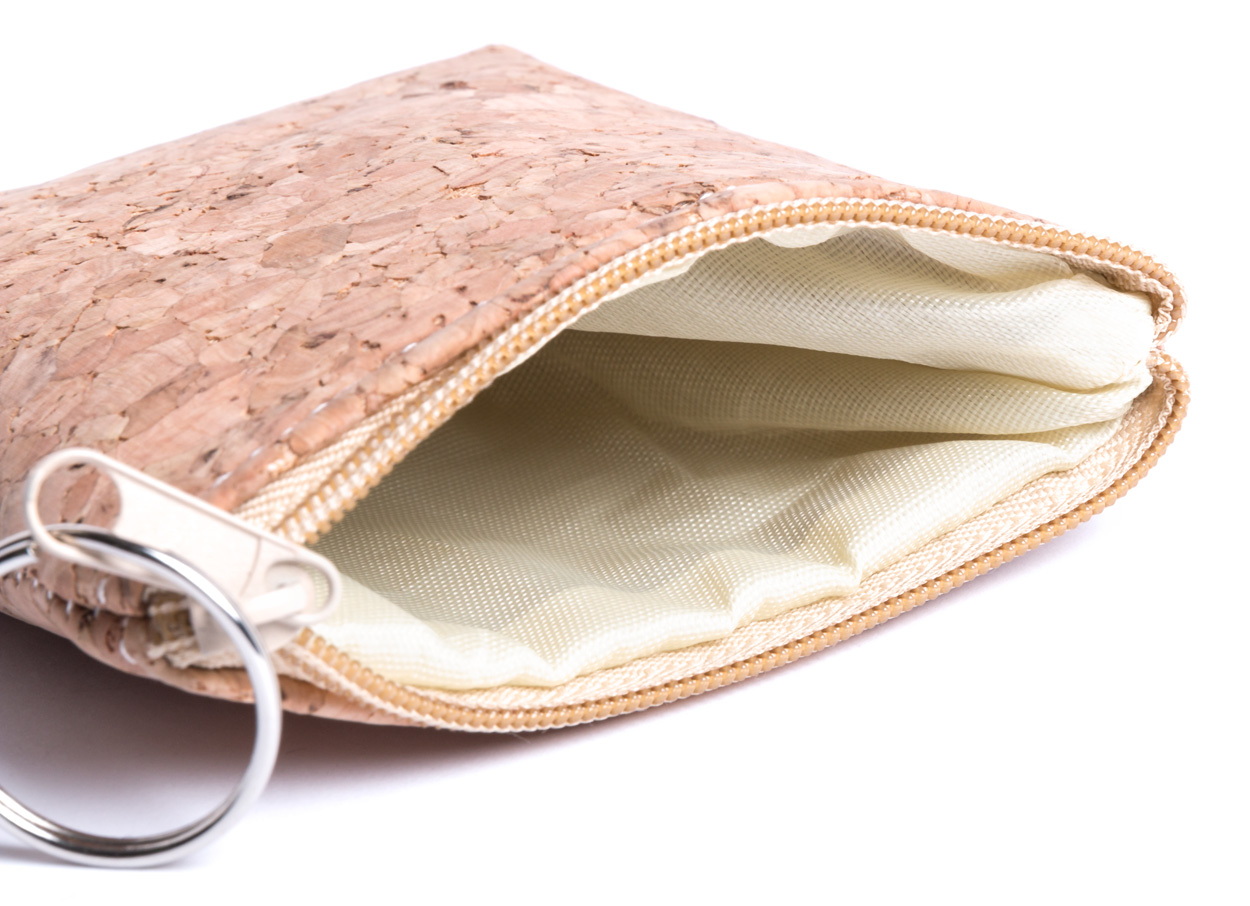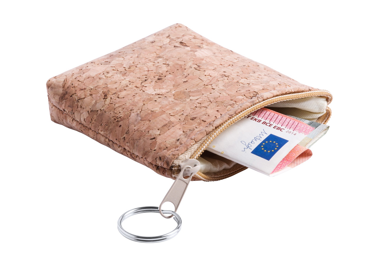 Cipzáras parafa pénztárca belső béléssel és fém kulcskarikával.