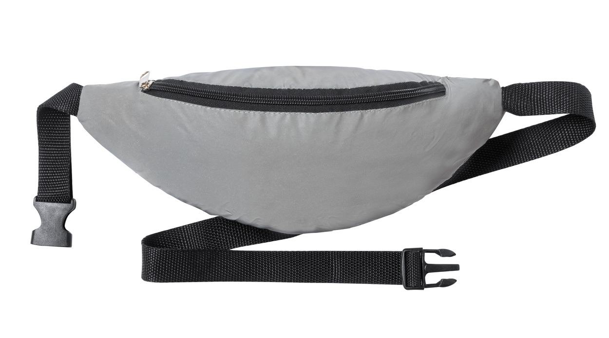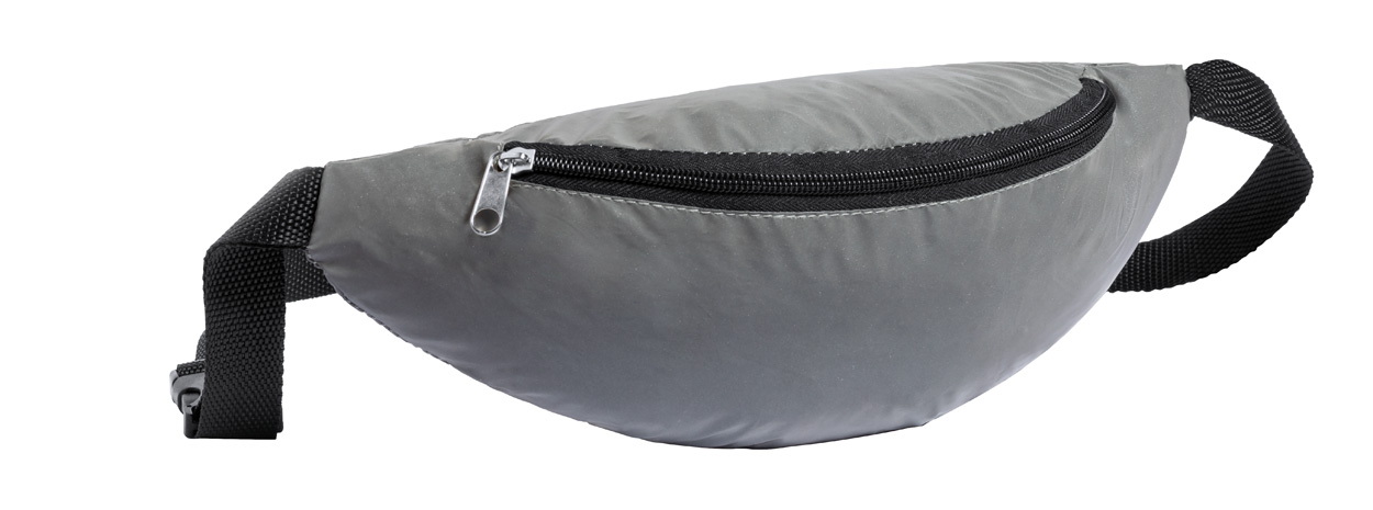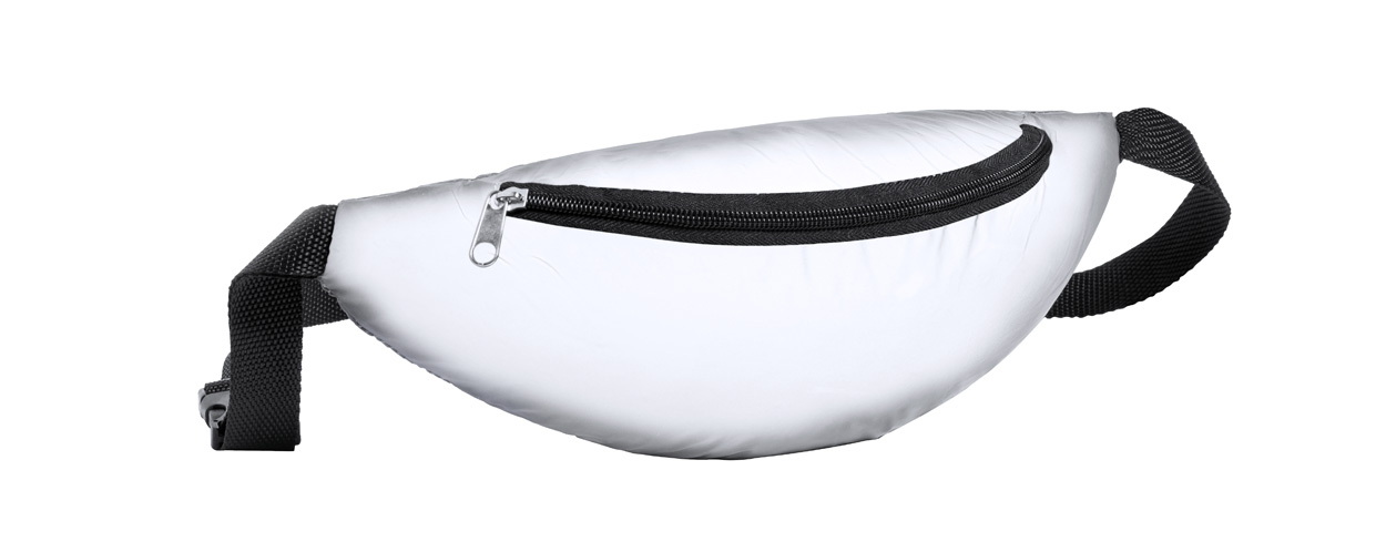 Fényvisszaverő hatású övtáska, cipzáras zsebbel és állítható pánttal. 210T poliészter.