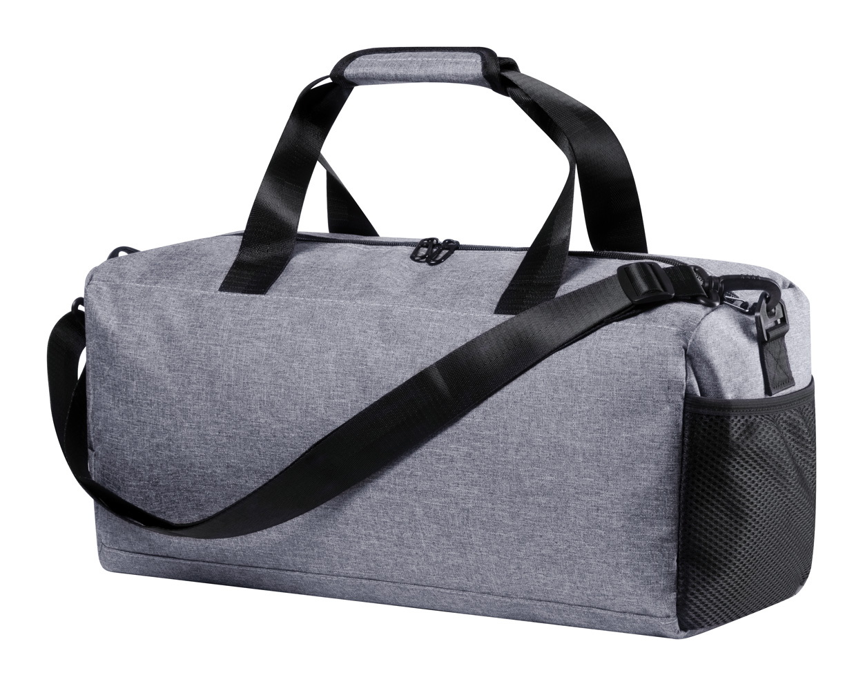 Sporttáska cipzáras rekesszel, oldalzsebekkel és állítható vállpántokkal, 600D poliészter.