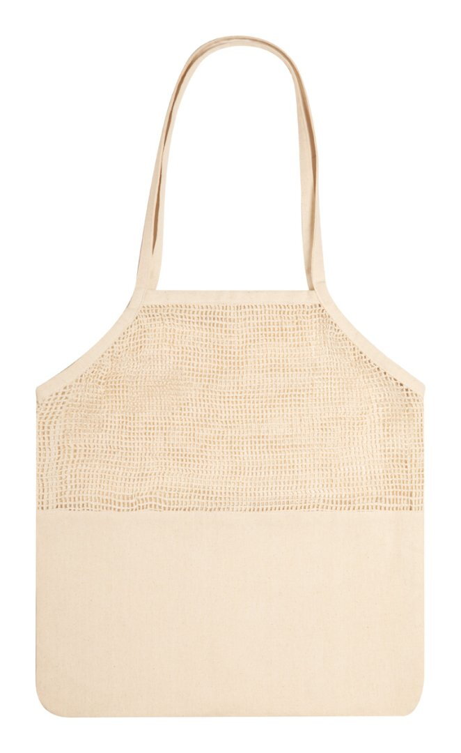 Pamut bevásárlótáska hálós felső résszel és középhosszú fülekkel. 100% cotton, 200 g/m².