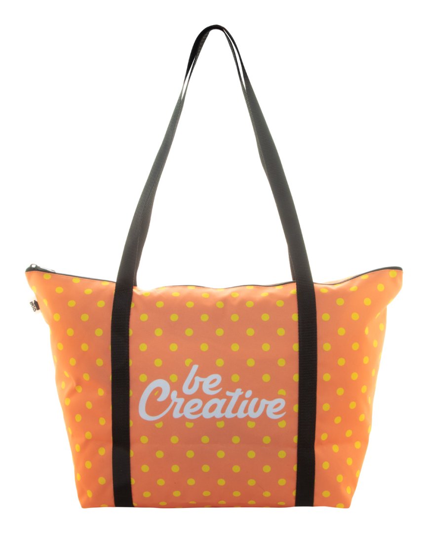 Egyedi gyártású, cipzáras strandtáska 600D RPET poliészterből, hosszú hordfüllel. Teljes felületén szublimációs eljárással emblémázva, megkülönböztető RPET címkével. Minimális rendelési mennyiség: 50 db.