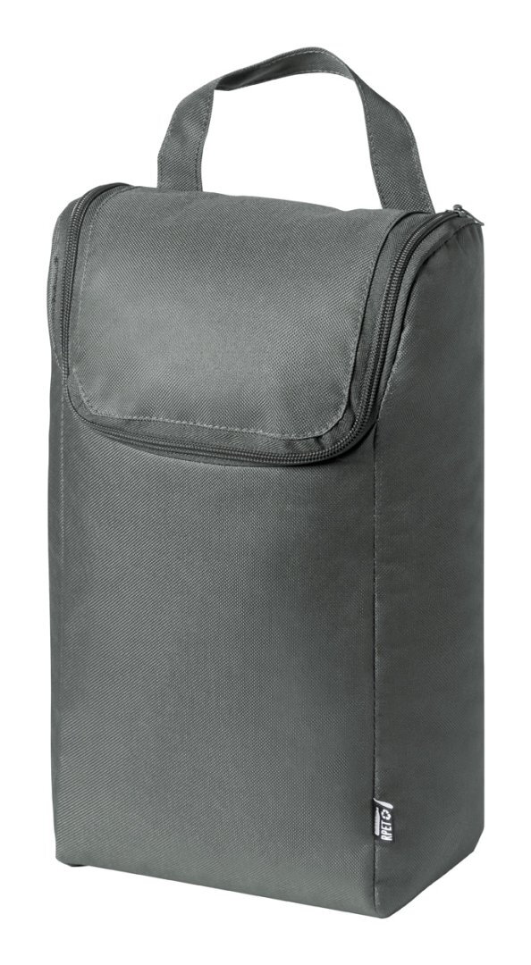 Cipzáras, 600D RPET poliészterből készült táska egy pár cipőhöz, megkülönböztető RPET címkével.