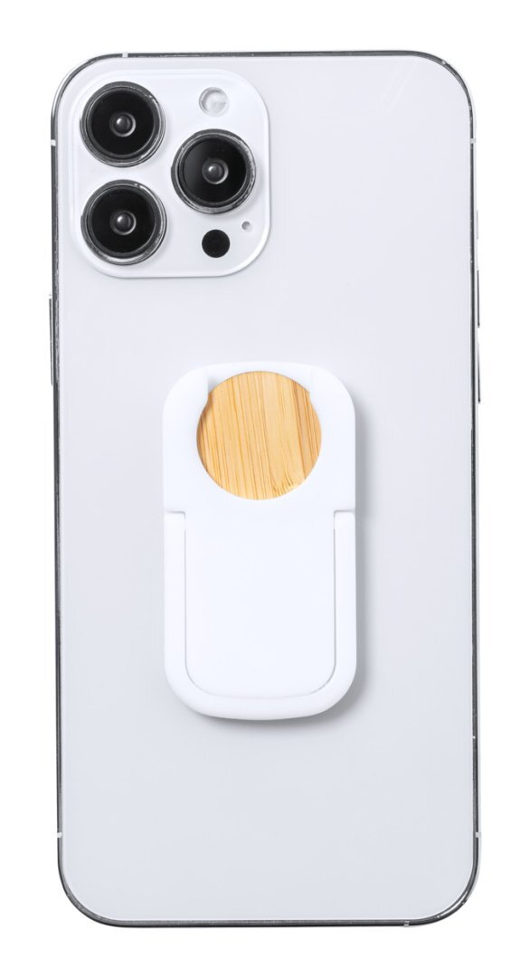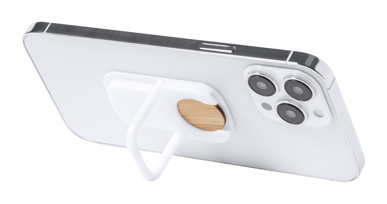 ABS műanyag mobiltelefon-tartó gyűrű öntapadós alappal és bambusz bevásárlóérmével.