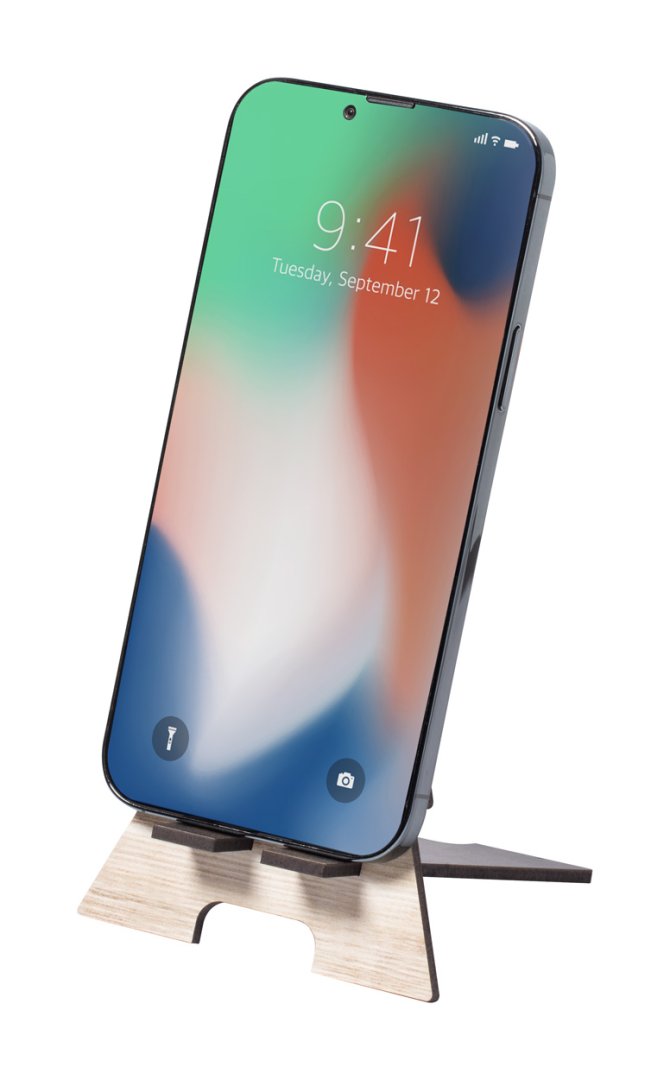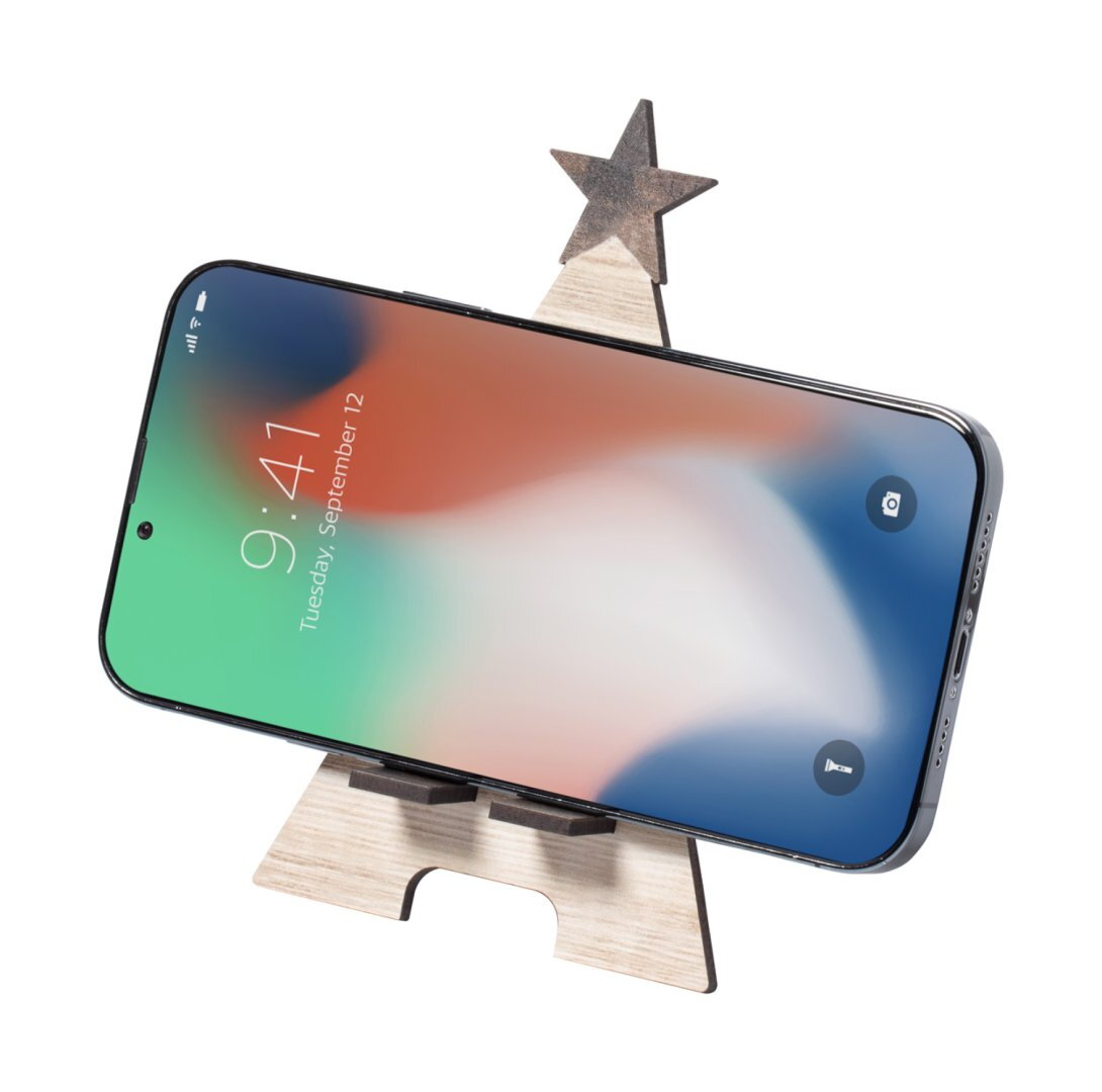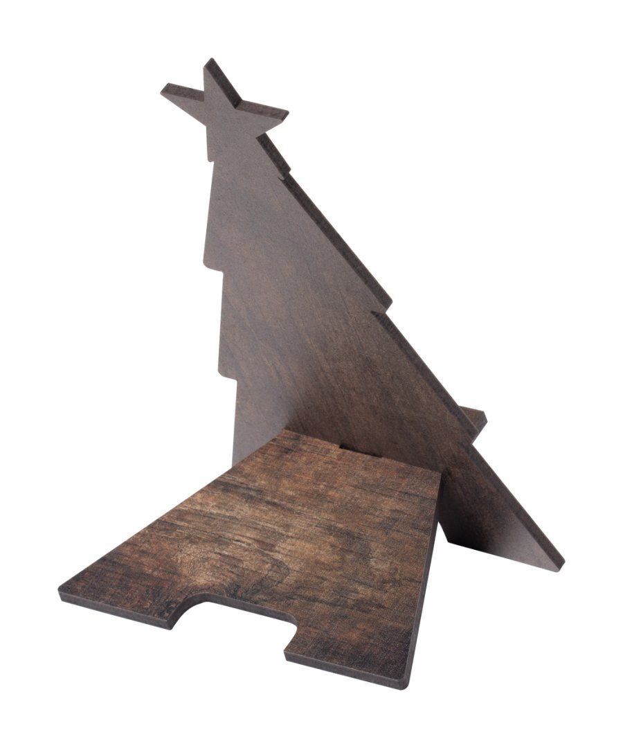 Fa karácsonyfa alakú asztali mobiltelefon-tartó kéttónusú kivitelben. Lapra szerelve szállítjuk.