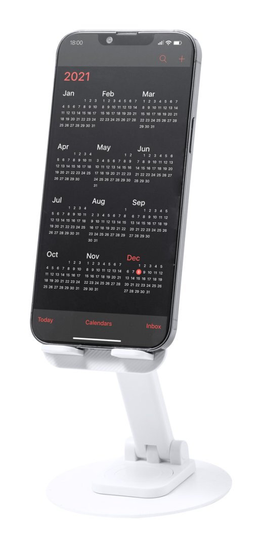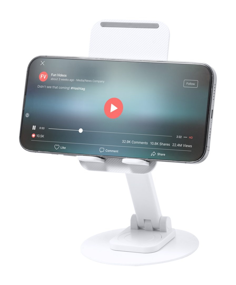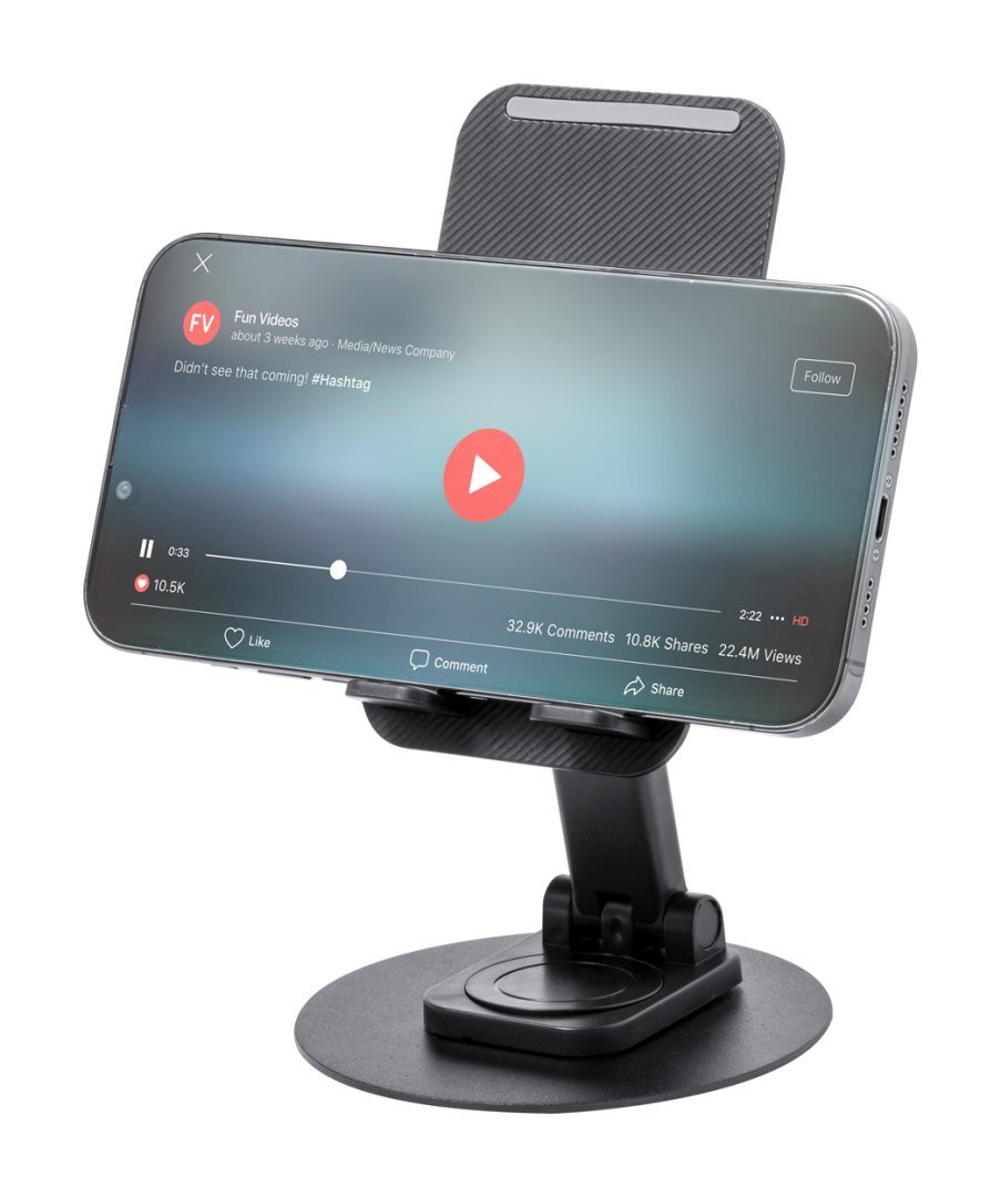 Összecsukható asztali mobiltartó ABS műanyagból és alumíniumból, állítható magassággal.