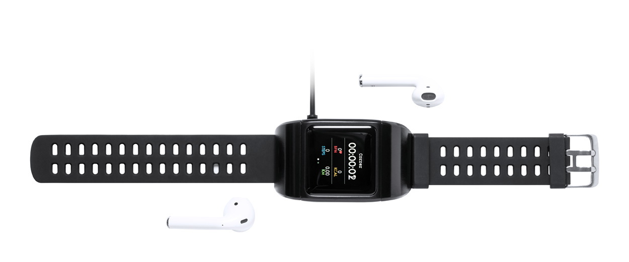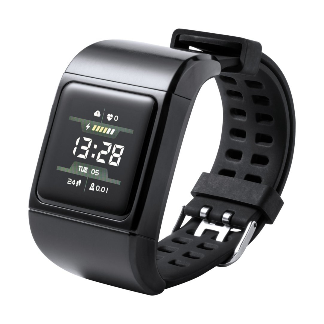 Többfunkciós bluetooth okosóra fém házban, 1,3" LCD érintőképernyővel, 300 mAh újratölthető akkumulátorral és TPU szíjjal. Beépített vezeték nélküli bluetooth fülhallgatóval és kihangosító funkcióval. Számos egészségfigyelő és intelligens funkcióval rendelkezik, mint például pulzusszám-, vérnyomás- és oxigénszintmérő, bluetooth hívás, időjárás előrejelzés, és alvásfigyelő. Csatlakoztatható okostelefonokhoz egy ingyenes iOS és Android alkalmazással. Mágneses vezeték nélküli töltővel és USB töltőkábellel szállítjuk. IP67 vízálló. Antonio Miro márkatermék.