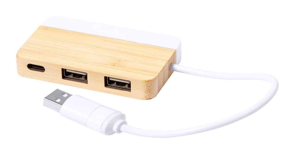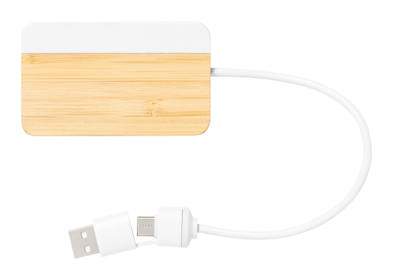 Bambusz USB hub márvány kivonatból készült betéttel. 2 USB és 1 USB-C porttal, USB 2.0. USB és USB-C csatlakozókkal.