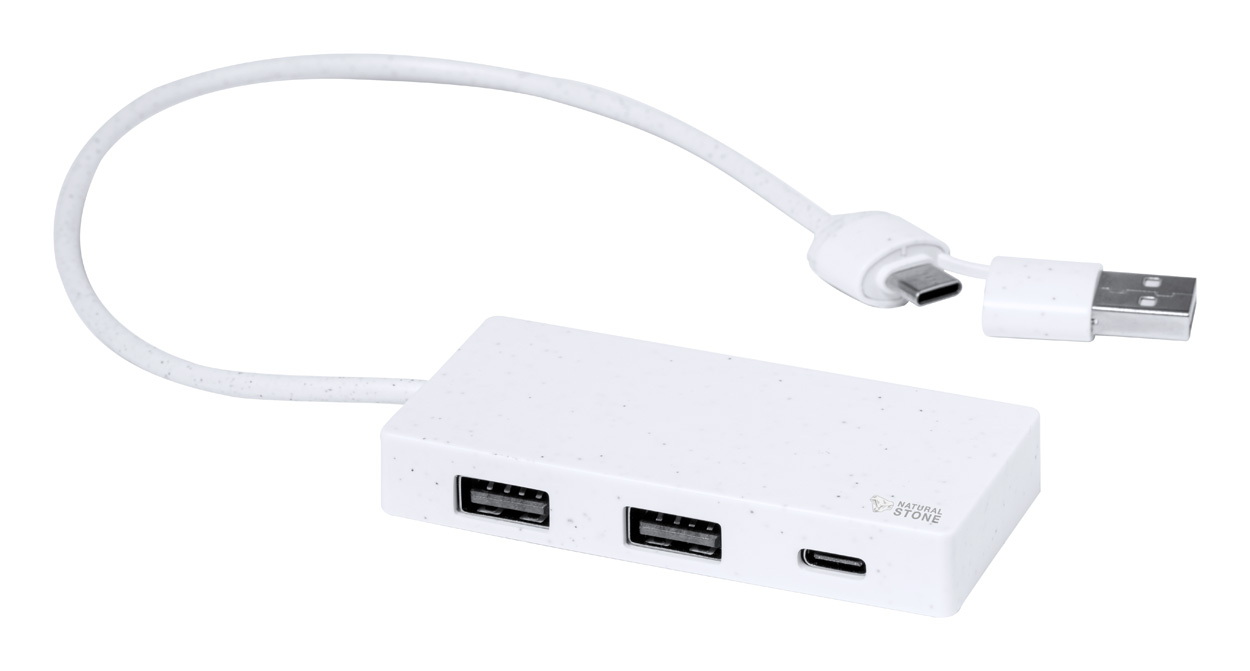 Természetes kő kivonatból és ABS műanyagból készült USB hub. 2 USB és 1 USB-C porttal, USB 2.0. USB és USB-C csatlakozós kábellel.