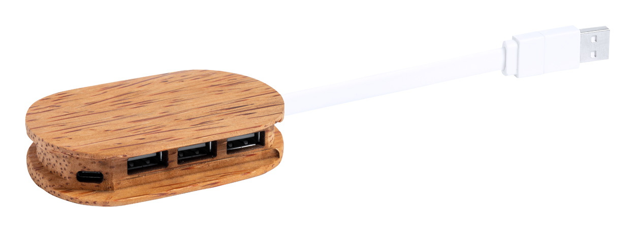 Kókusz borítású USB hub 3 USB és 1 USB-C porttal, USB 2.0.