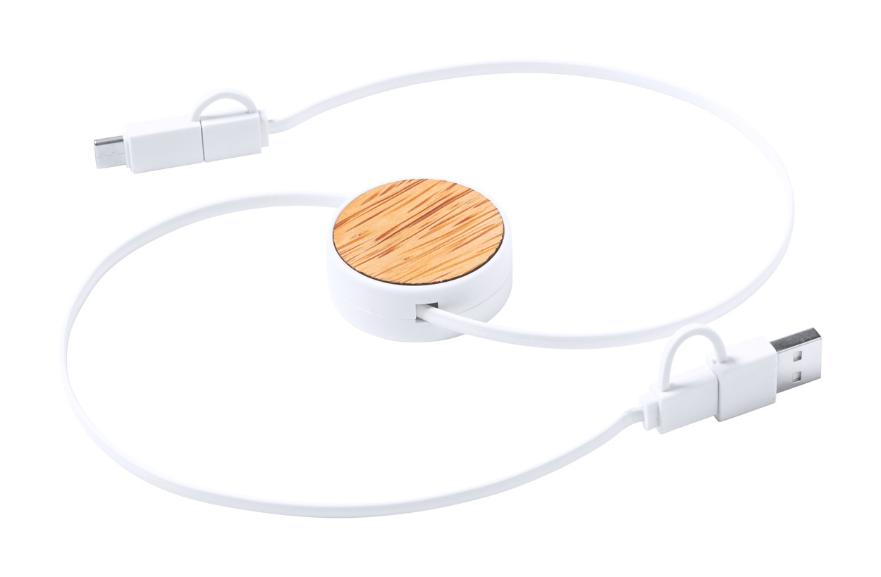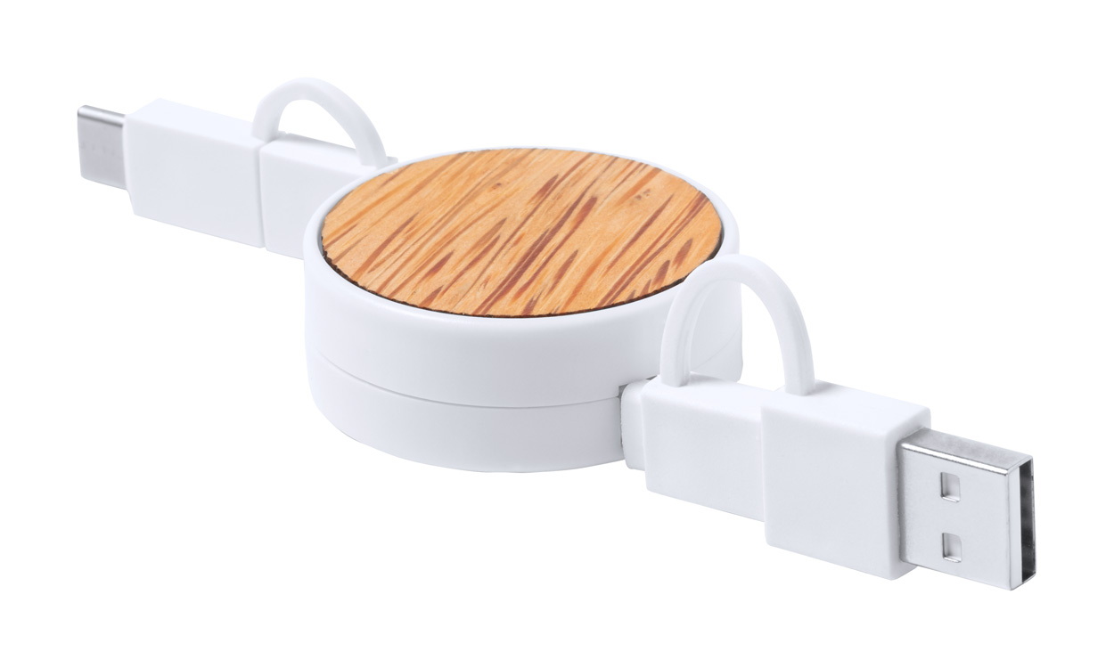 Kókusz borítású teleszkópos USB töltőkábel ABS műanyagból. Micro USB, USB-C és Lightning csatlakozókkal. USB és USB-C bemenettel.