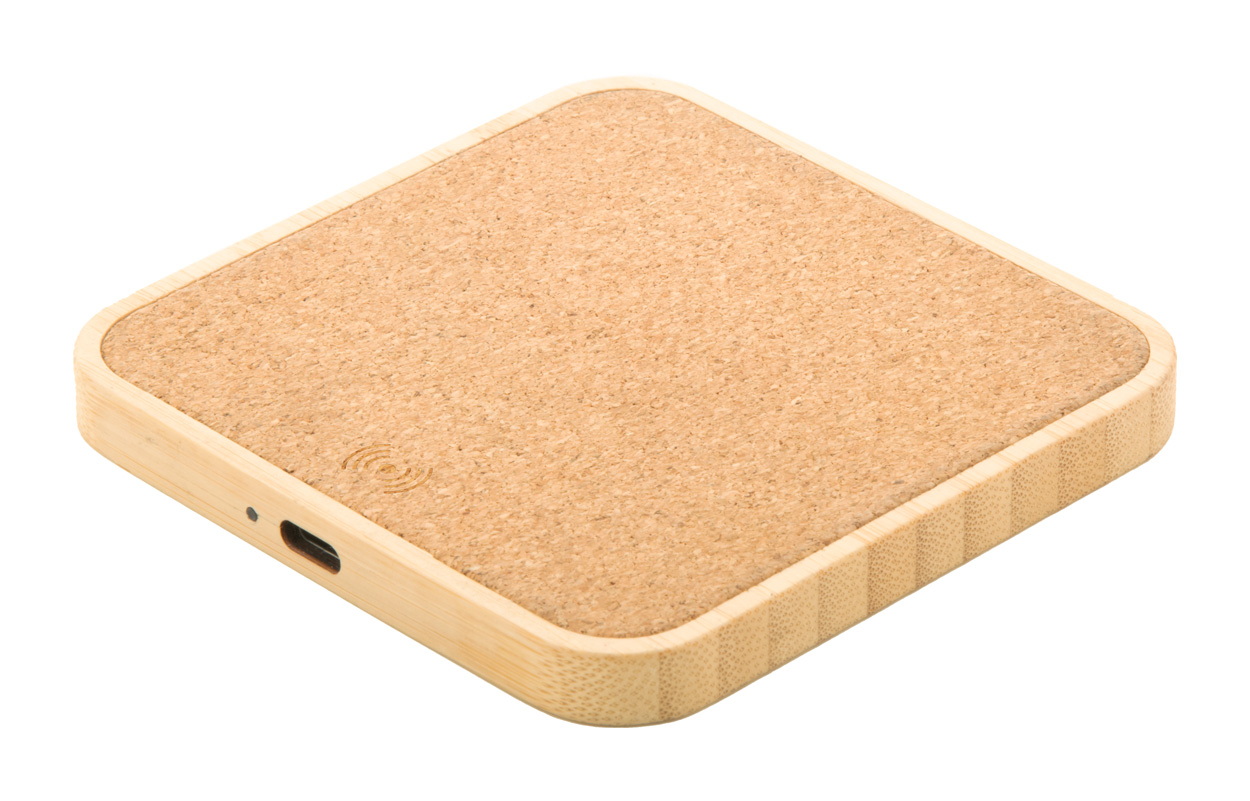 Bambusz és természetes parafa anyagú, vezeték nélküli gyorstöltő (15W). USB töltőkábellel szállítjuk.
