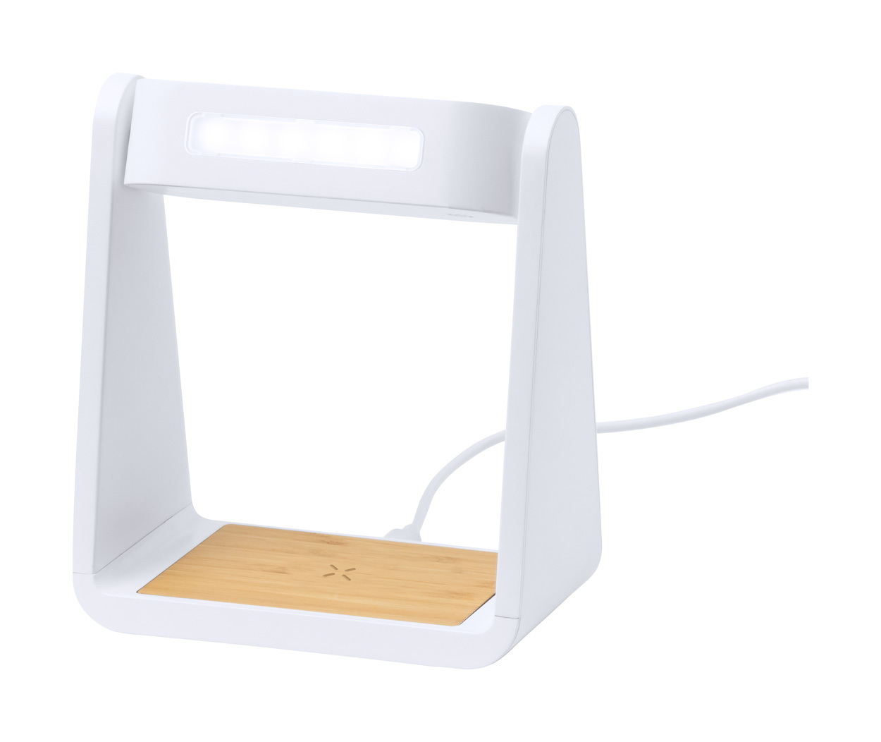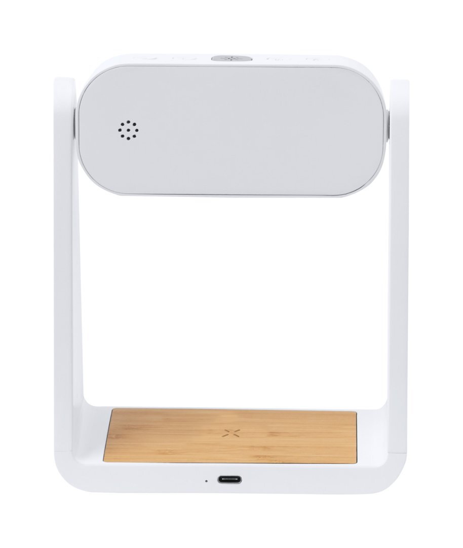 Digitális ébresztőóra ABS műanyag és bambusz borítással, 6 LED lámpával és beépített vezeték nélküli gyorstöltővel (10W). USB töltőkábellel szállítjuk.