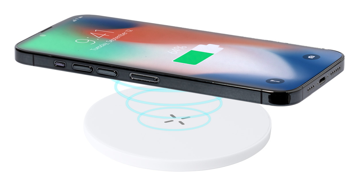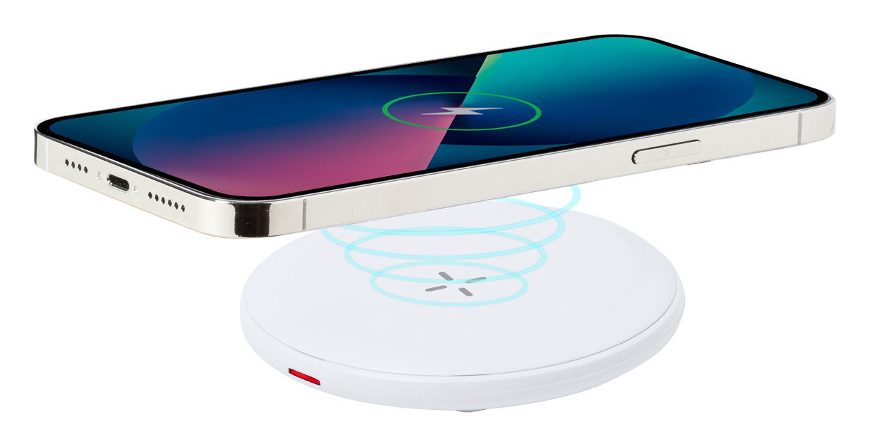 Újrahasznosított ABS műanyag vezeték nélküli gyorstöltő (15W). USB-C töltőkábellel szállítjuk.