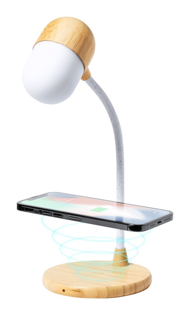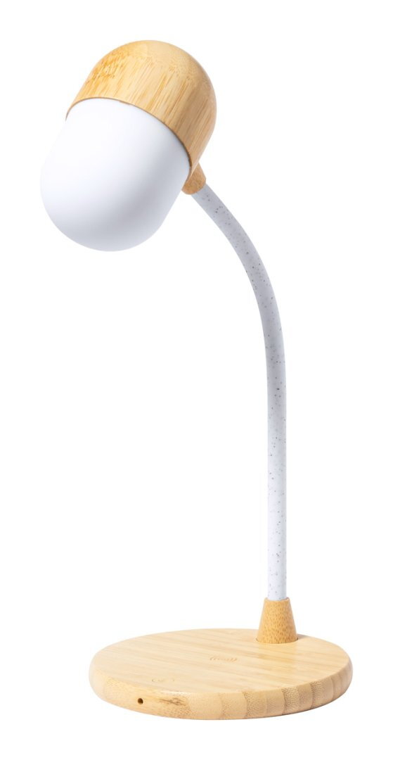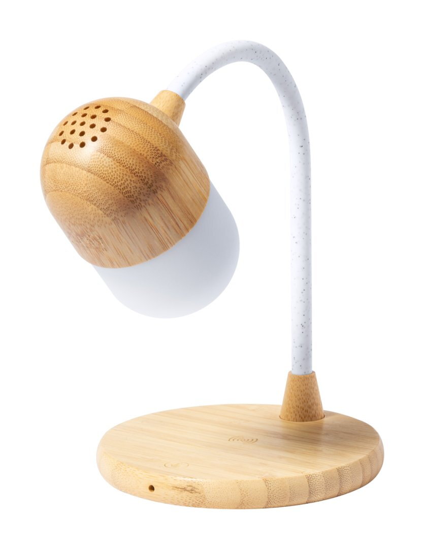Rugalmas, többfunkciós bambusz asztali lámpa. 14 LED-del, 3 fénymóddal és állítható fényerővel. Beépített bluetooth hangszóróval és vezeték nélküli gyorstöltővel (10W). Micro USB töltőkábellel szállítjuk. Ajándékdobozban. Limited Edition termék.
