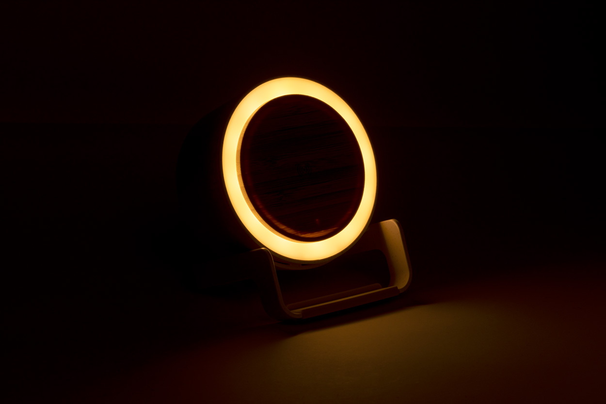 Többfunkciós asztali lámpa bambuszból és búzaszalma műanyagból. 12 LED-del, 3 fény móddal és állítható fényerővel. Beépített bluetooth hangszóróval és vezeték nélküli gyorstöltővel (10W). Ajándékdobozban, USB-C töltőkábellel szállítjuk. Limited Edition termék.
