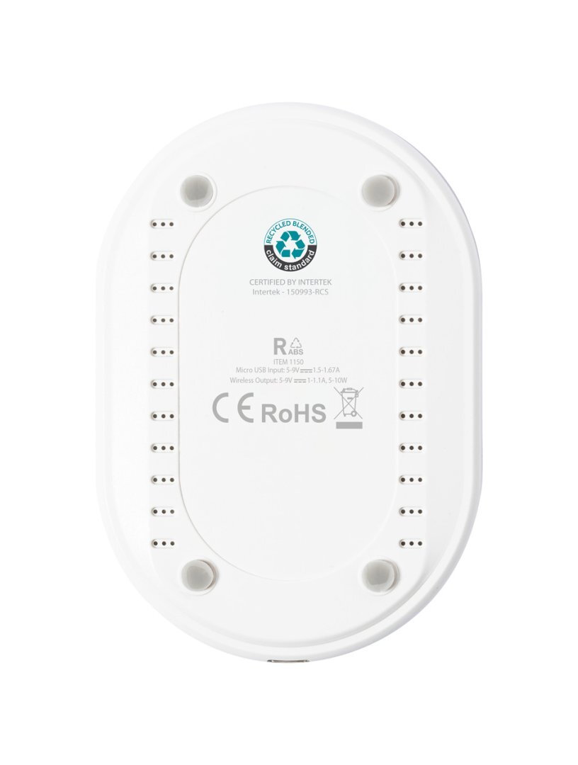 Vezeték nélküli gyorstöltő (10 W) újrahasznosított ABS borítással. USB töltőkábellel.