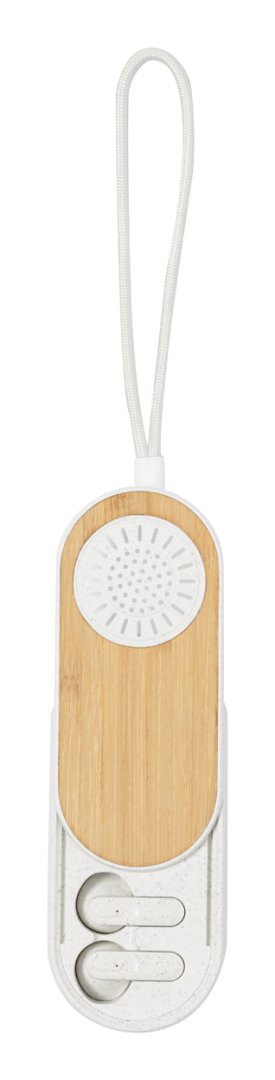 Ökológiai búzaszalma műanyag, vezeték nélküli bluetooth fülhallgató többfunkciós búzaszalma műanyag és bambusz töltőtokban, beépített hangszóróval. Kihangosító funkcióval és beépített újratölthető akkumulátorral. USB töltőkábellel szállítjuk.