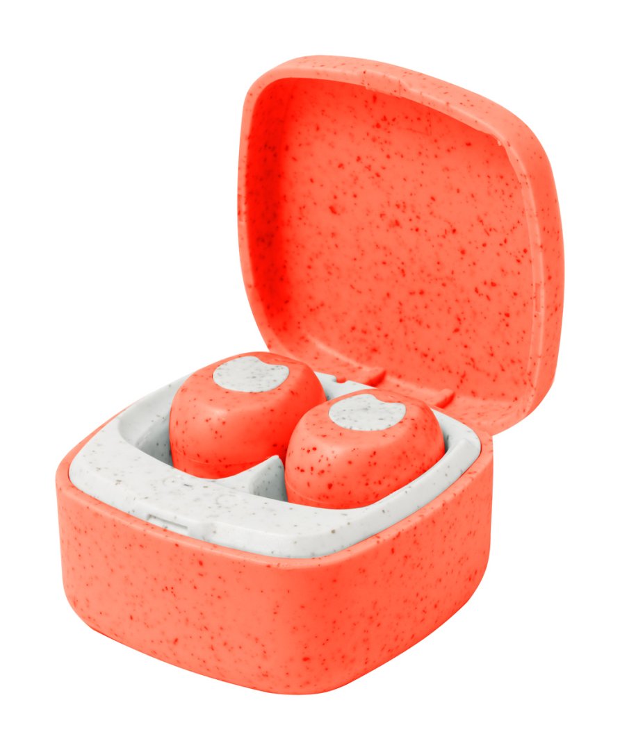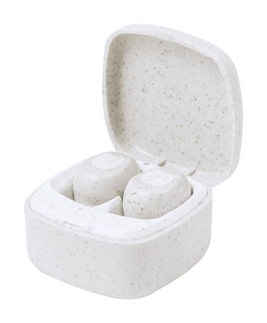 Ökológiai búzaszalma műanyag, vezeték nélküli bluetooth fülhallgató kihangosító funkcióval töltő tokban. USB töltőkábellel szállítjuk.