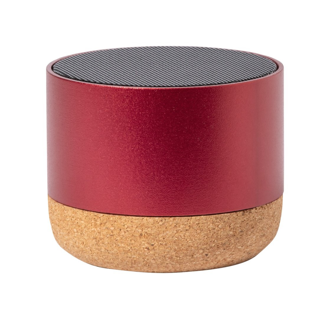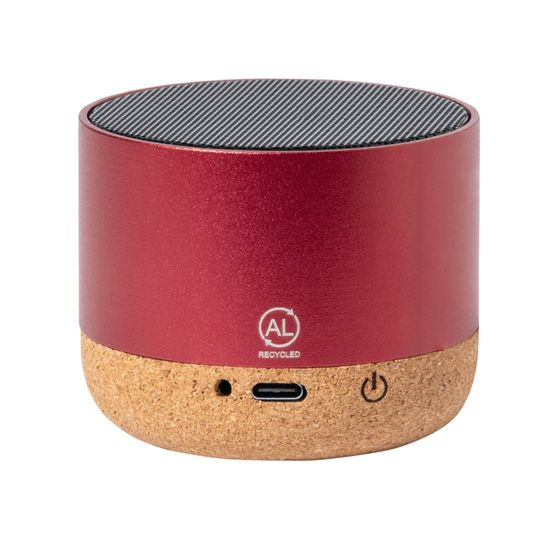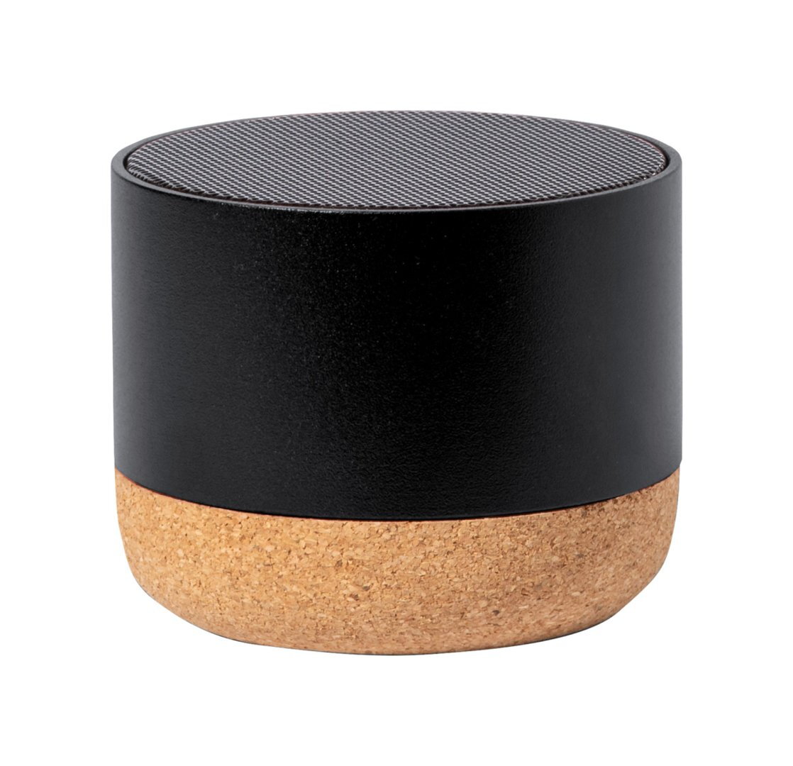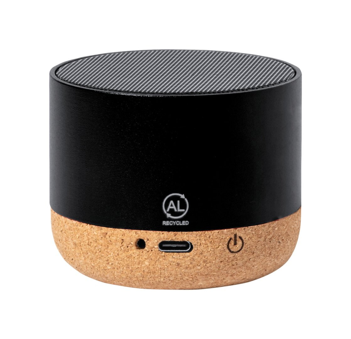 Újrahasznosított alumínium bluetooth hangszóró természetes parafa talppal és beépített újratölthető akkumulátorral (300 mAh). USB töltőkábellel szállítjuk.