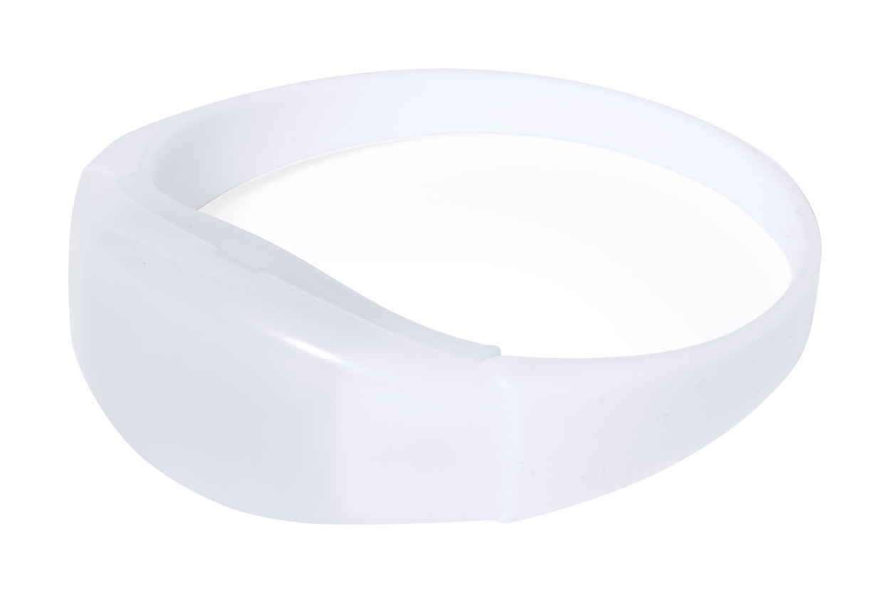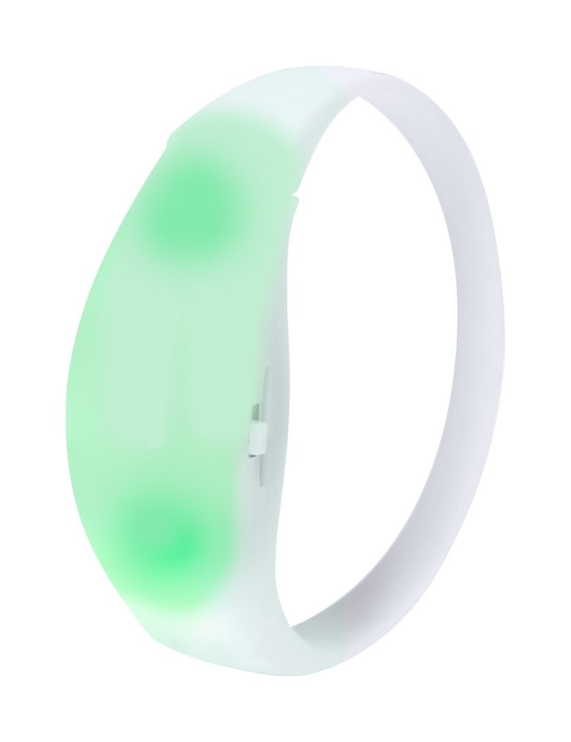 Szilikon karkötő 2 színű LED lámpával és hangérzékeny kapcsolóval. Gombelemmel szállítjuk.
