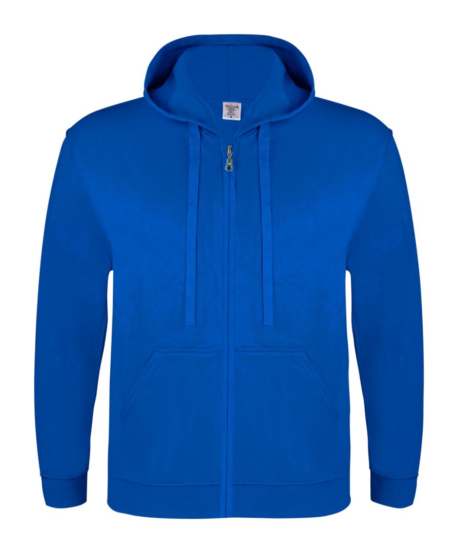 50% pamutból és 50% poliészterből készült, felnőtt kapucnis pulóver 2 elülső zsebbel és cipzárral. 280 g/m². Keya márkatermék.
