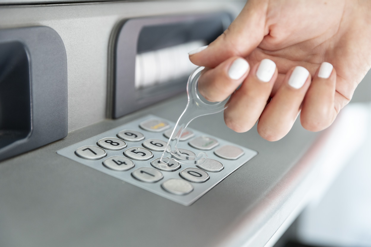 Praktikus átlátszó akril higiéniai kulcs. Közvetlen kontaktus elkerülésével lehetséges ajtók kinyitása és gombok megnyomása.