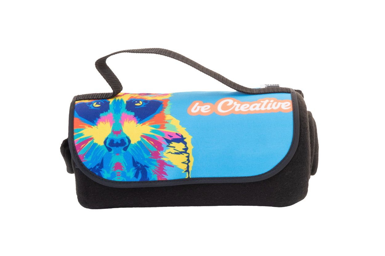 Egyedi gyártású, RPET polár polár takaró (200 g/m²) tépőzáras fogantyúval 600D RPET poliészterből. Szublimációs emblémázással és megkülönböztető RPET címkével. Minimális rendelési mennyiség: 50 db.