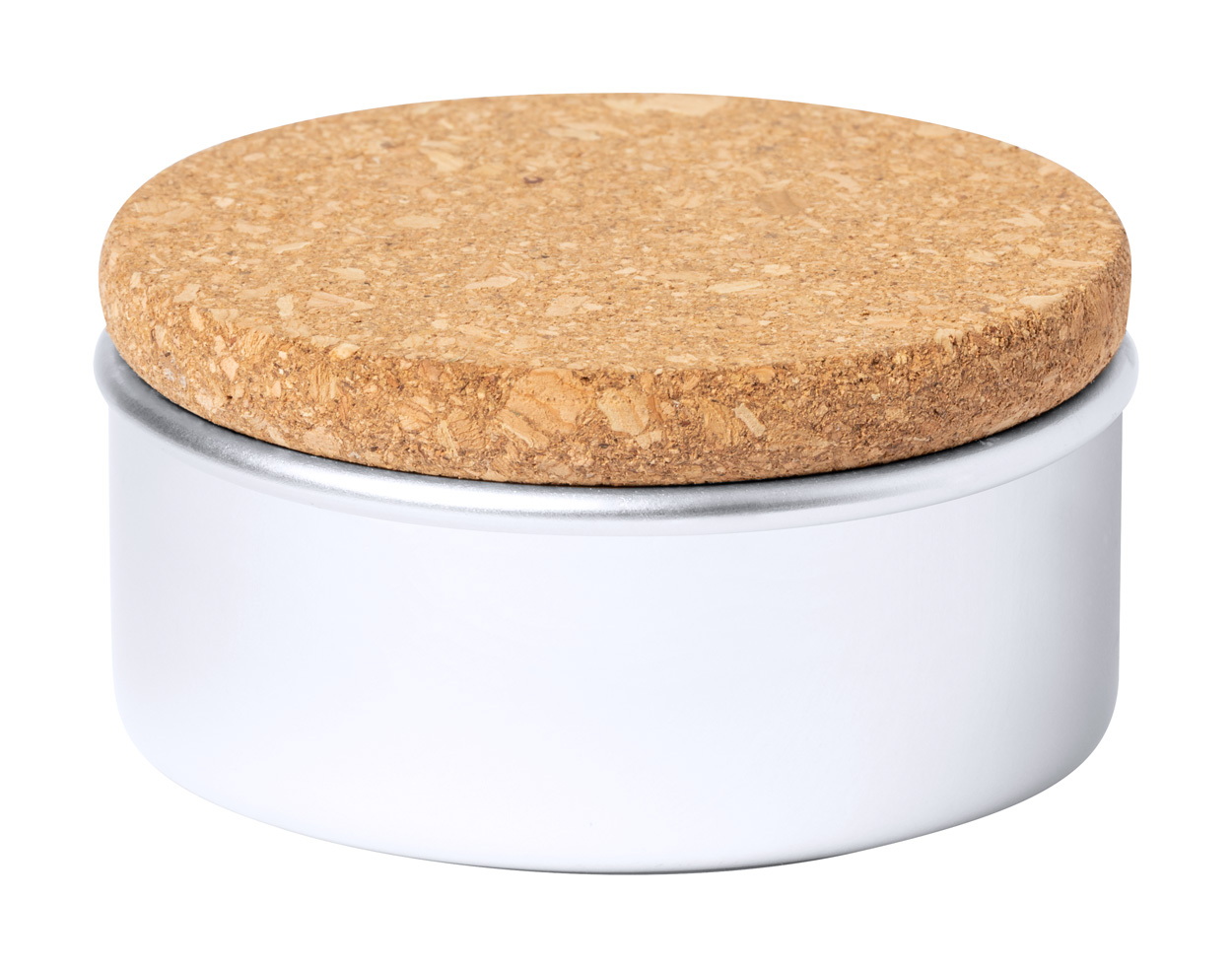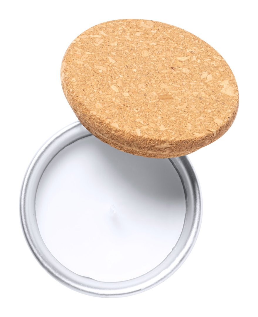 Növényi alapú gyertya vanília illattal, alumínium tartóban és természetes parafa tetővel.