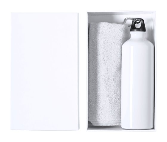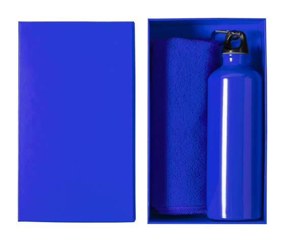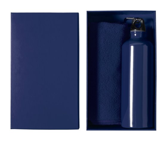 Sport ajándékszett, mely tartalmaz: egy alumínium sportkulacsot karabinerrel (800 ml) és egy 40x90 cm-es mikroszálas törölközőt (160 g/m²), színben harmonizáló ajándékdobozban. A kulacs nem alkalmas szénsavas italok tárolására.